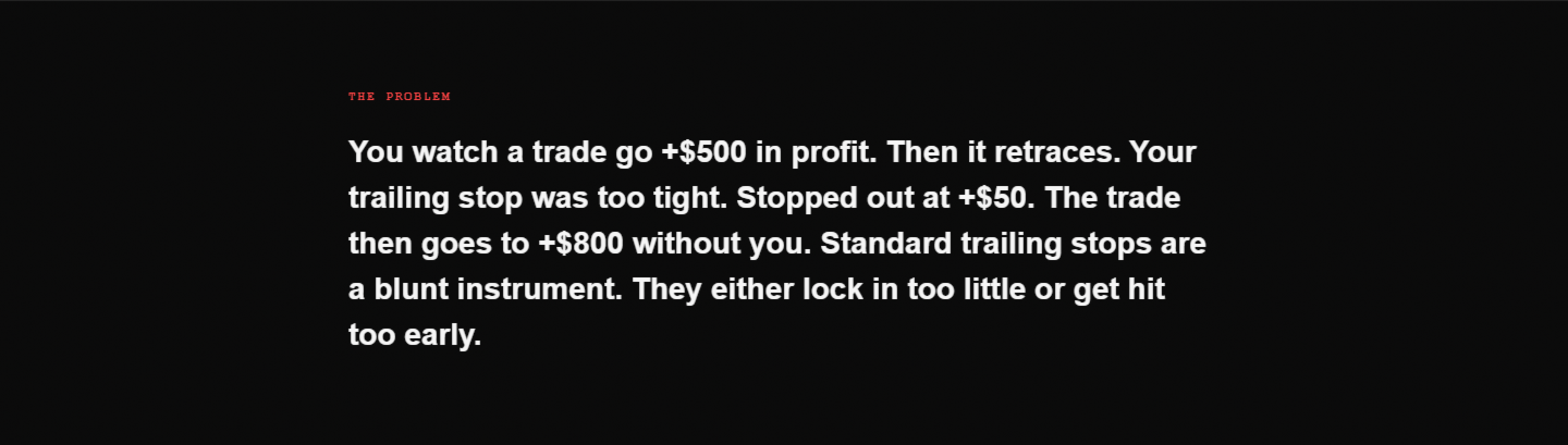 Standard trailing stops cost you money. They trail too tight and stop you out before the move is done.
