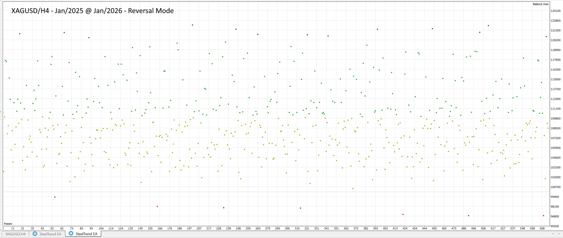 - Reversal-Based Mode – Identifies exhaustion zones and enters counter-trend positions at statistically significant reversal points.