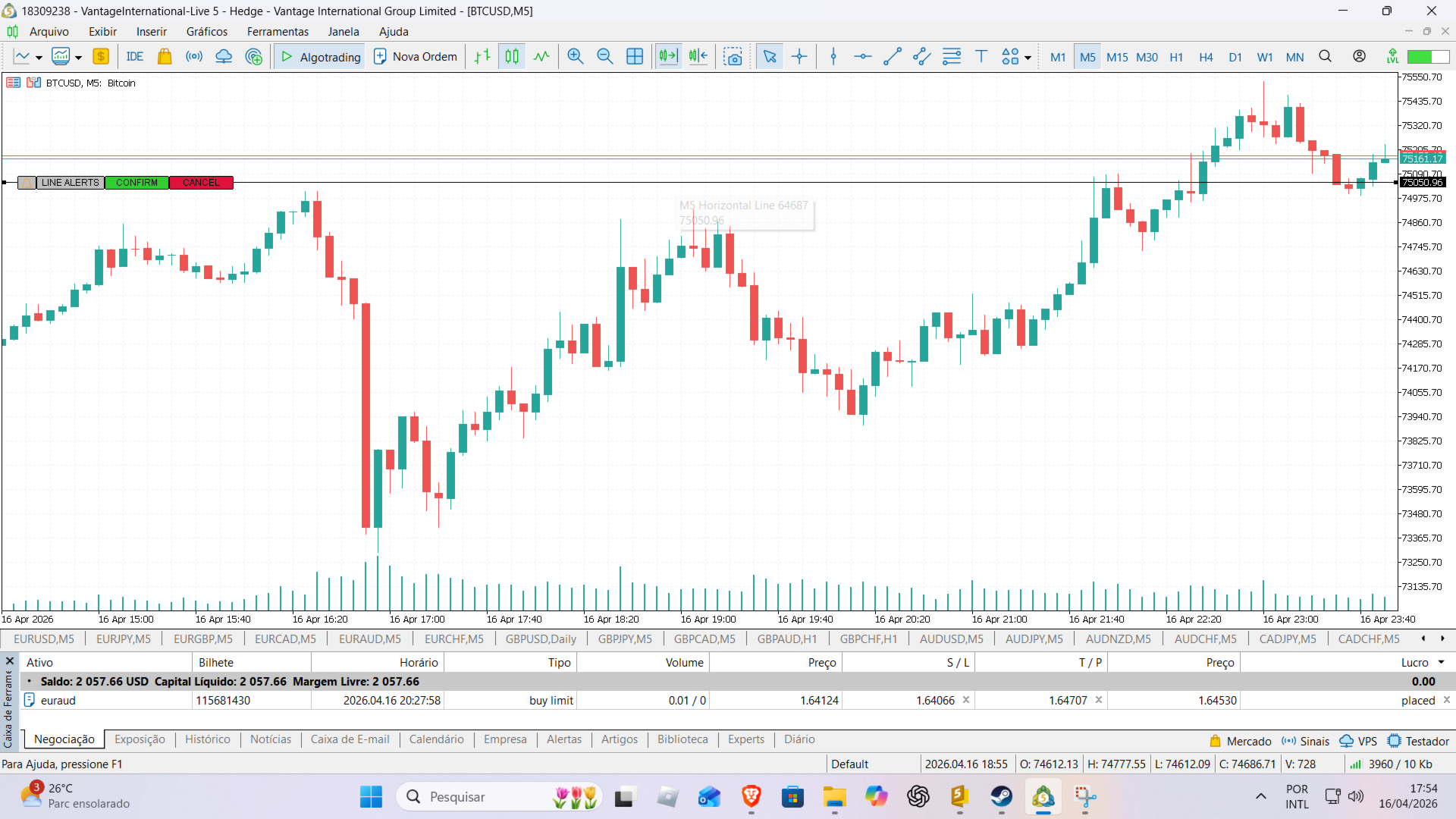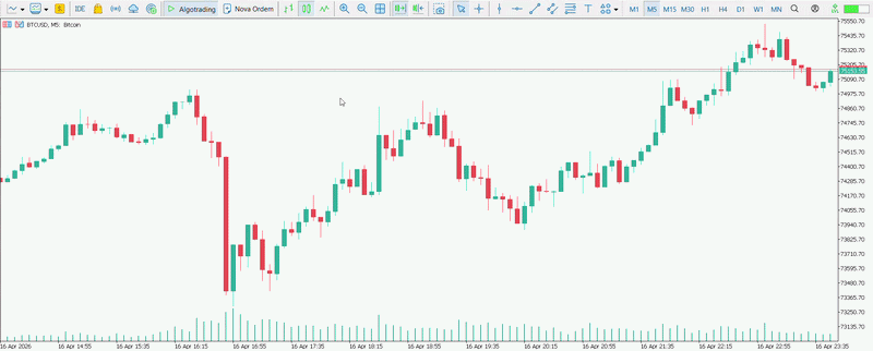 使用方法 有効化: インジケーターをチャートにドラッグします。 アラートの作成: 任意の価格レベルに標準の MetaTrader 5 水平線を描画します。 設定: 線の上にメニューが表示されます。[CONFIRMAR] をクリックしてアラートを設定します。線は破線スタイルに変わり、アクティブであることを示します。 調整: 価格を変更したい場合は、線をクリックしてドラッグするだけです。別の場所をクリックすると、新しい位置で再設定されます。 キャンセル: アラートを使用しない場合は、[CANCELAR] をクリックすると、線は通常のシステム線に戻ります。