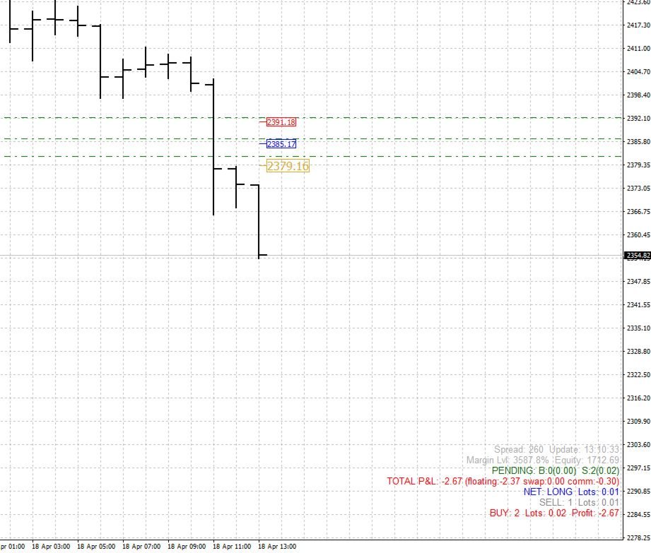 🟡 Golden mark - total break-even for all positions (net position). If the buy and sell lots are equal (full hedge), mark the current price.