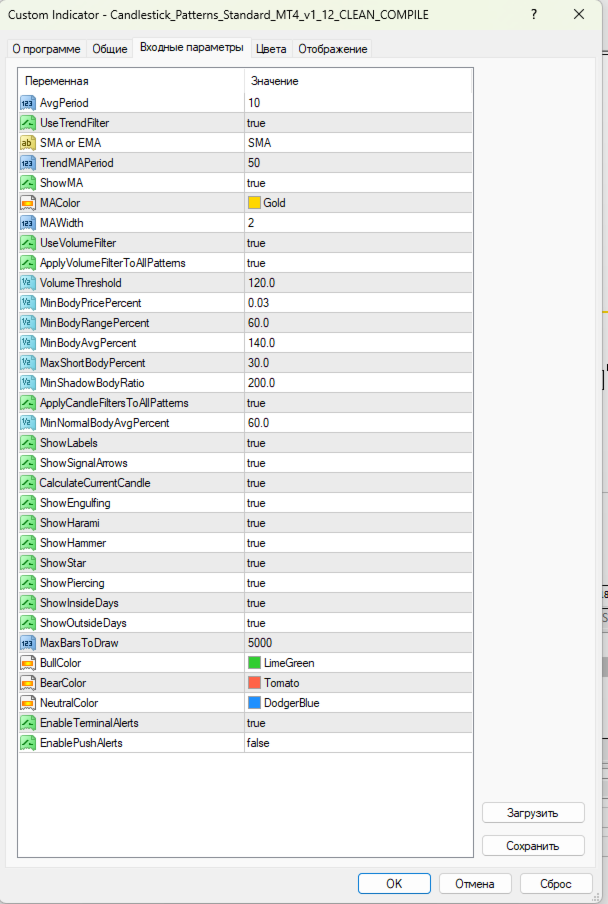 The indicator includes sensitivity parameters that allow you to adjust how strictly candlestick patterns are detected: