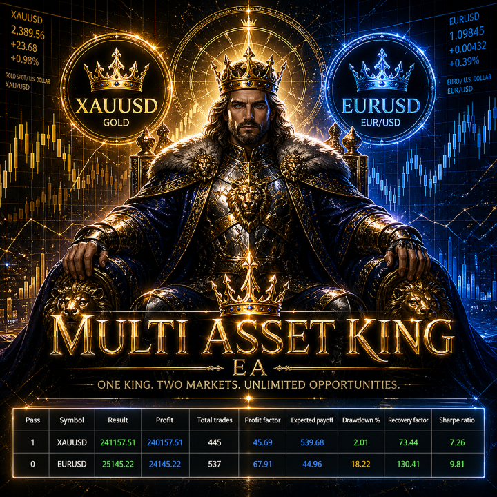 MULTI ASSET KING EA is a multi-symbol automated trading system designed for XAUUSD and EURUSD, optimized for the M15 timeframe.
