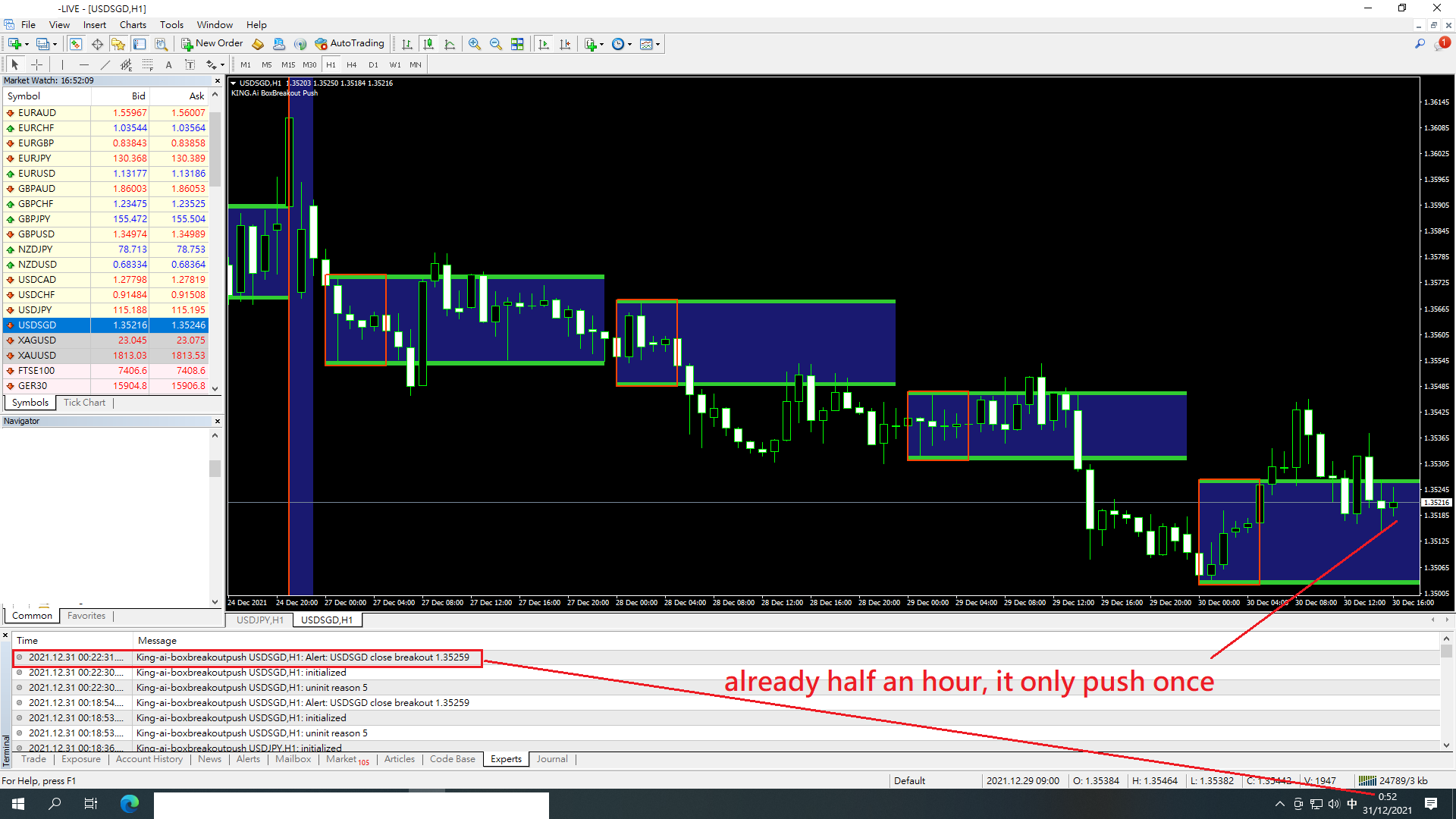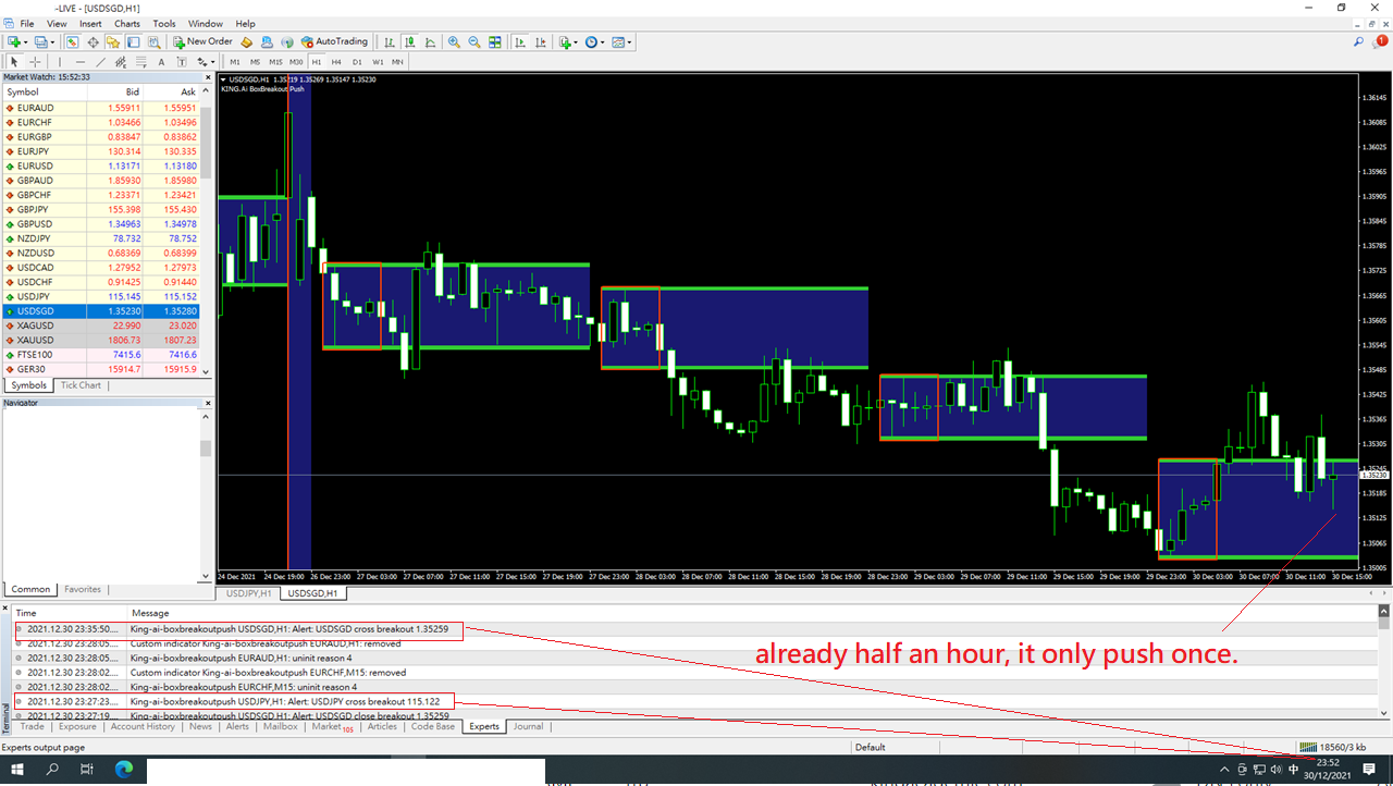 2. Cross mode works by sending out push alerts when price crosses upper or lower band of the box. It does not have any setting on “after Xpips” and it is nothing related to “OFFSET”. If you want to get a notice before the price crossing the box, you should use the close mode. And there is “close distance setting” as well. Close mode delivers push notifications when a candle moves close to the top or the bottom line.