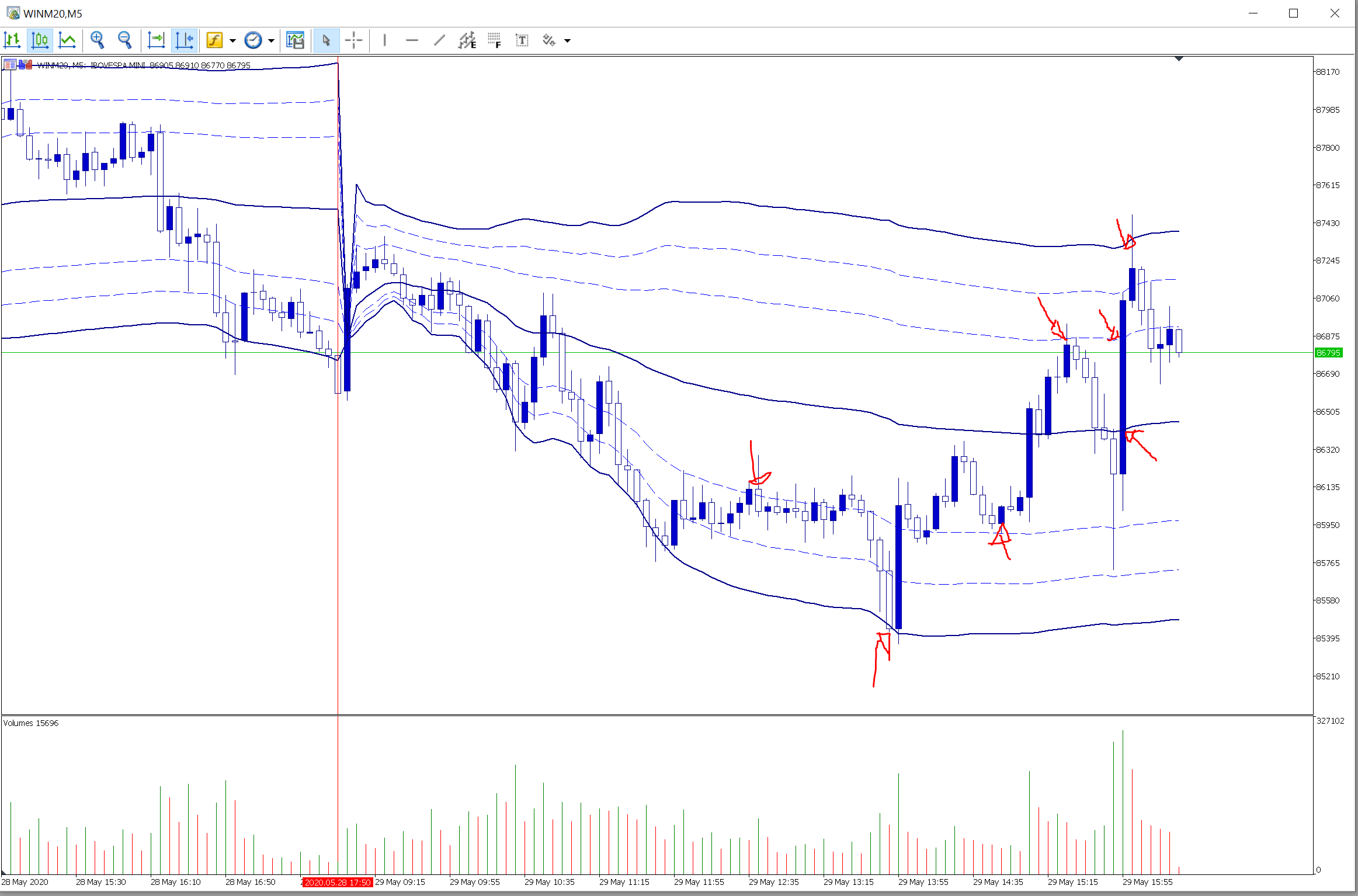 Por que ao meu ver, as bandas deveriam iniciar o dia quase que no mesmo ponto da Vwap e ir expandindo conforme a vwap ganhasse volume... Me fiz claro?