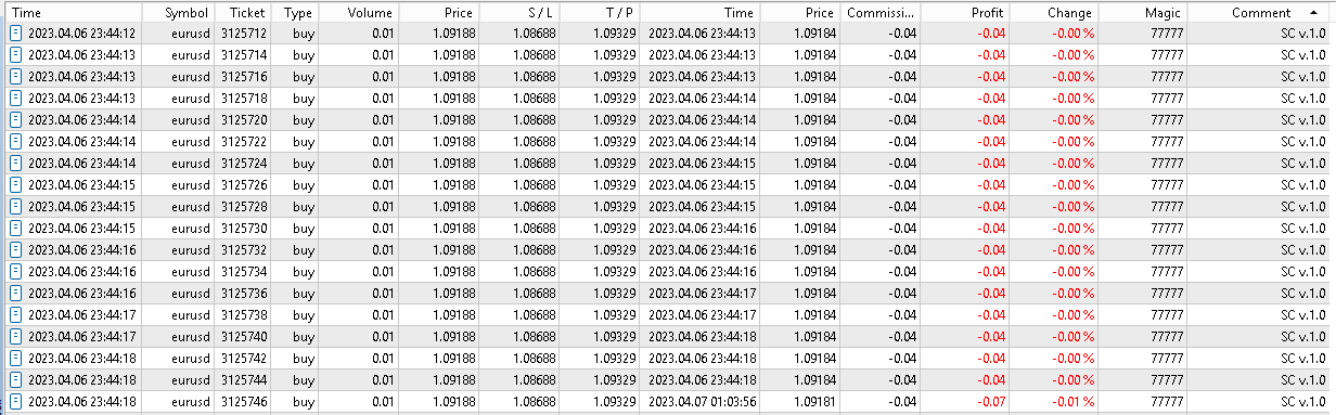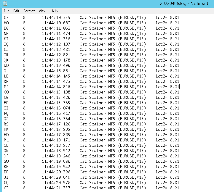 Cat Scalper opened a series of short-duration trades yesterday, wondering why it did that. It has never happened before.