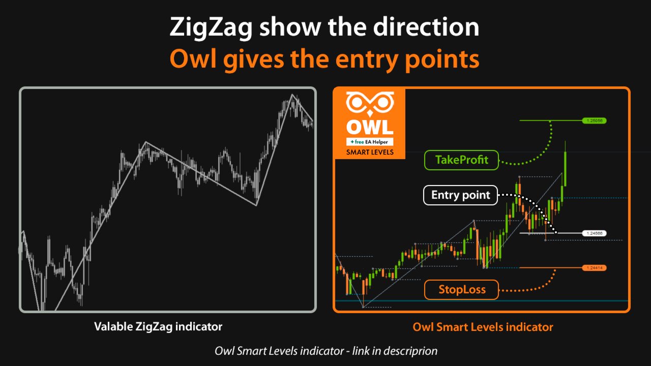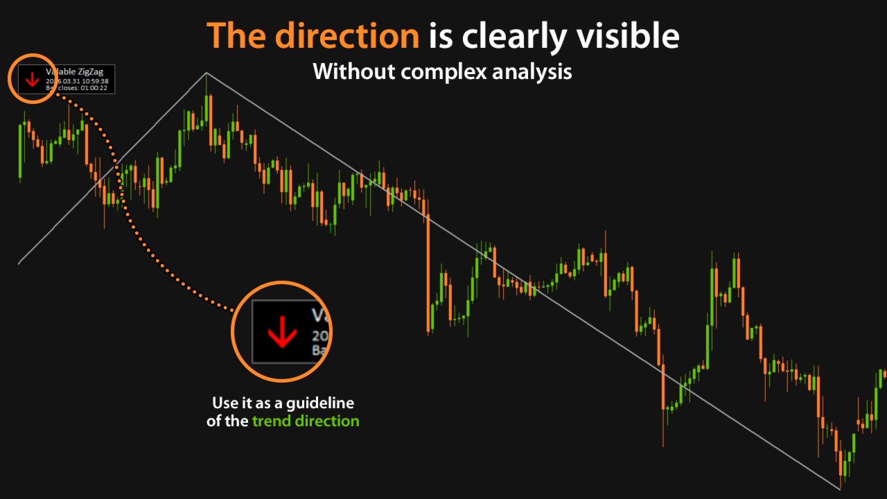 Valable ZigZagは、主にトレンド指標です。 これは、トレーダーが取引すべき主な方向性を設定しますが、市場に参入する指標としても機能します。