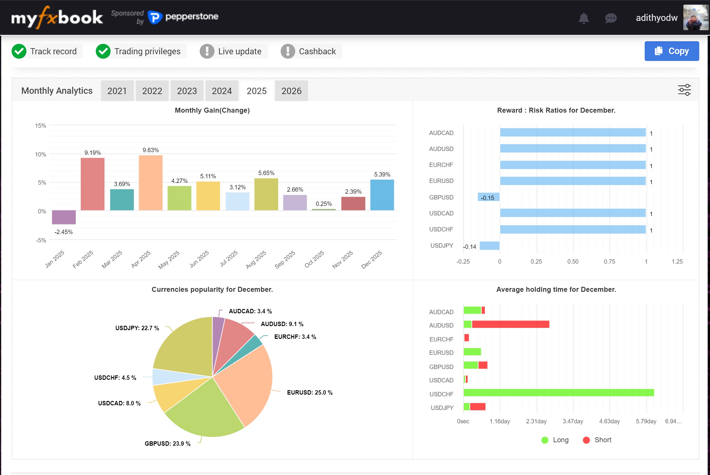 In 2022, we achieved a gain of 83.06%. We executed trades with super low risk due to the highly volatile forex market during the year.