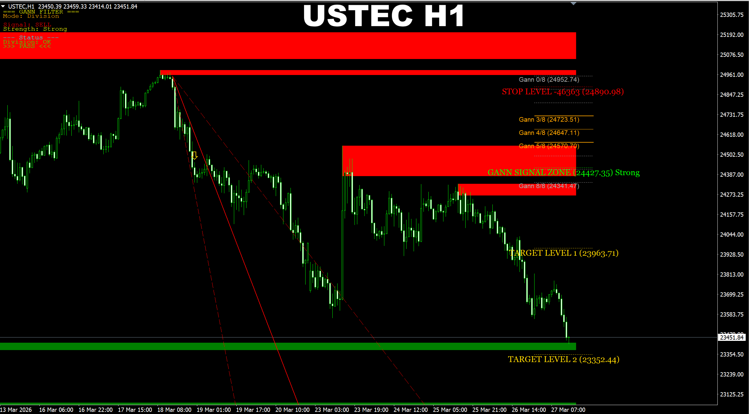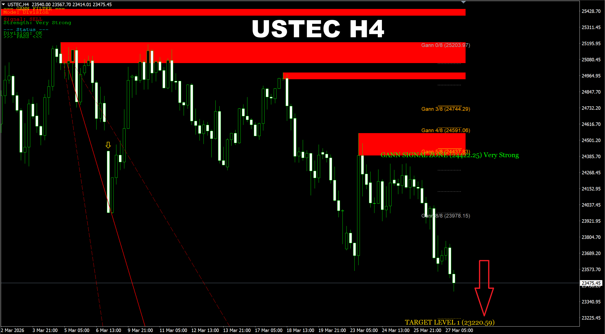 Gann Made Easy. USTEC H4. Update on my previous post. I mentioned the price will go lower. So this is the area the price will be heading to. It is the Target Level 1 based on the H4 time frame.