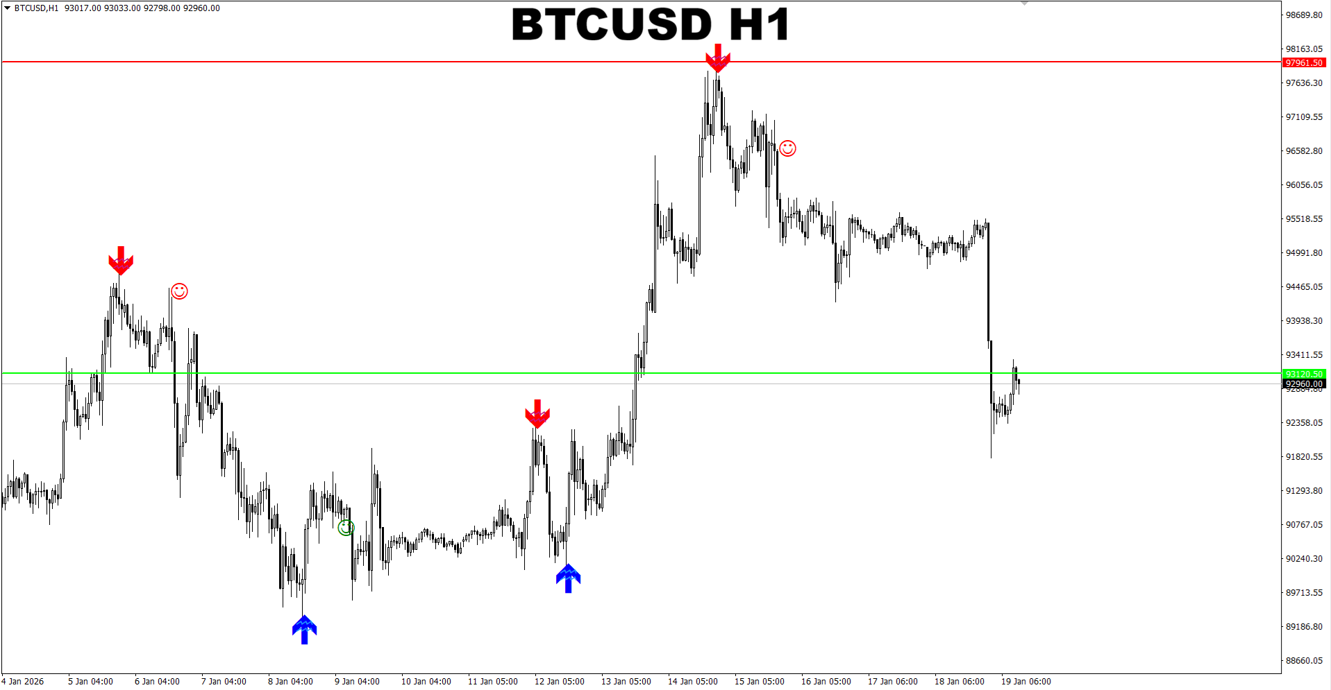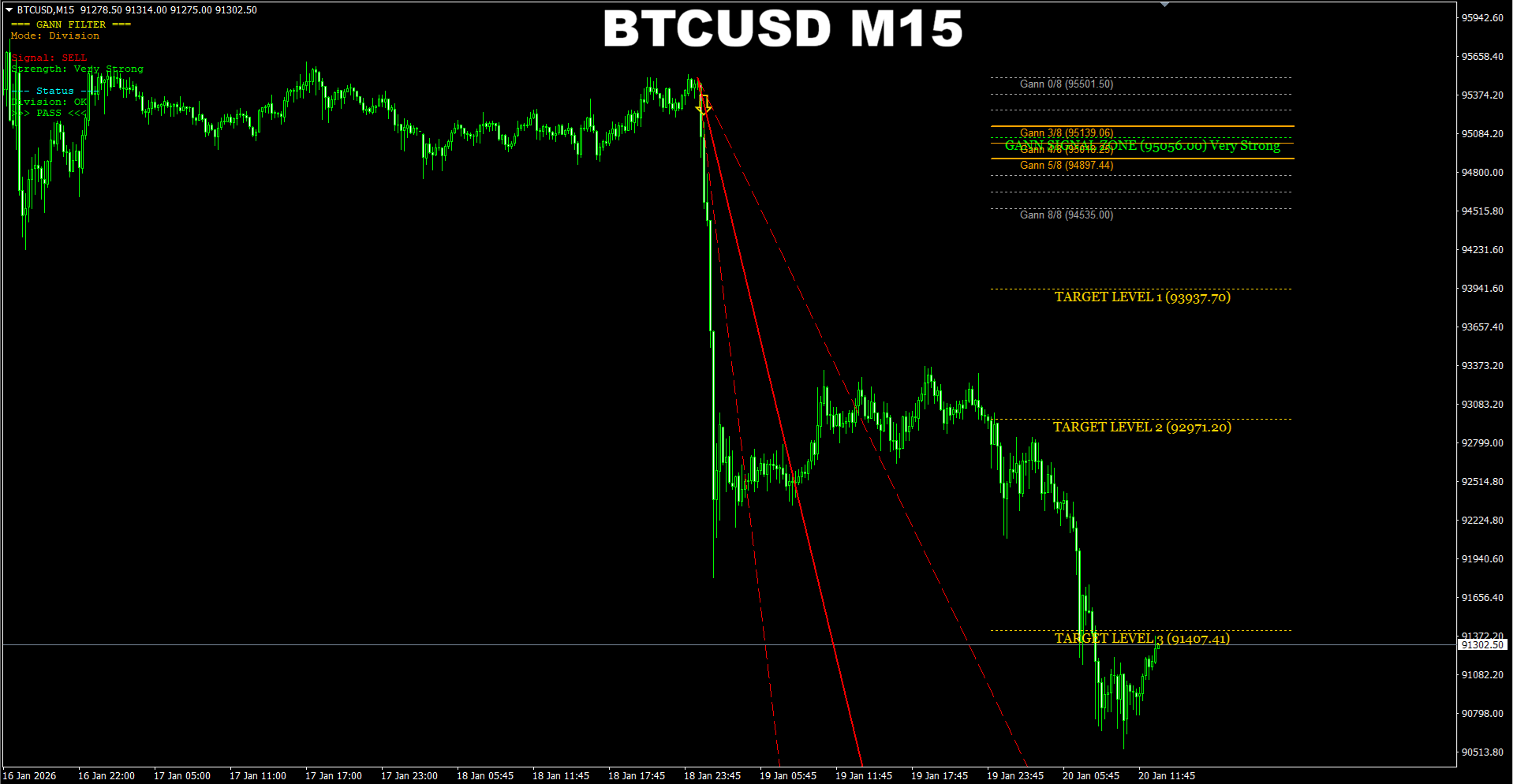 Gann Made Easy. BTCUSD H1. Update on current market. It seems the price will go even lower than it is now. Update on the next target.