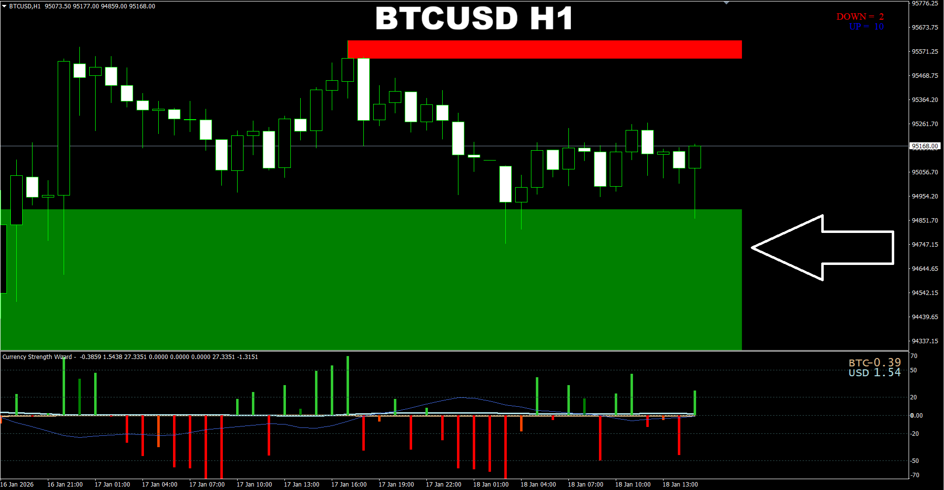 Currency Strength Wizard. BTCUSD H1. Update on current market. Now price is ranging mostly with attempts to go lower but current strong Support area does not allow the price to go lower the easy way. Instead it seems there are many BUY orders sitting there. But based on the higher time frame analysis like H4, we can say that the price still has a good chance to go lower. Though it may not break it completely. This is why in terms of short-term perspective selling has more sense. But in terms of medium-term, I do see that we will have a BUY move eventually. But as for short term price may go a little bit lower deep into Support area to get the strength from multiple buy orders waiting for the price there.