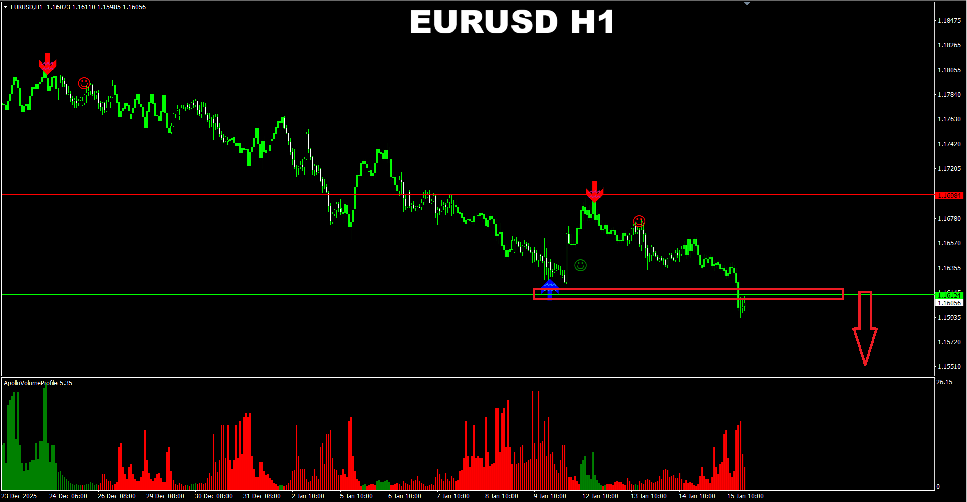 Currency Strength Wizard. EURUSD D1. Update on current market. The price has just had a new SELL breakout which has potential to lead the price down to the next strong Support area down below. Short-term and medium-term outlook - SELL.