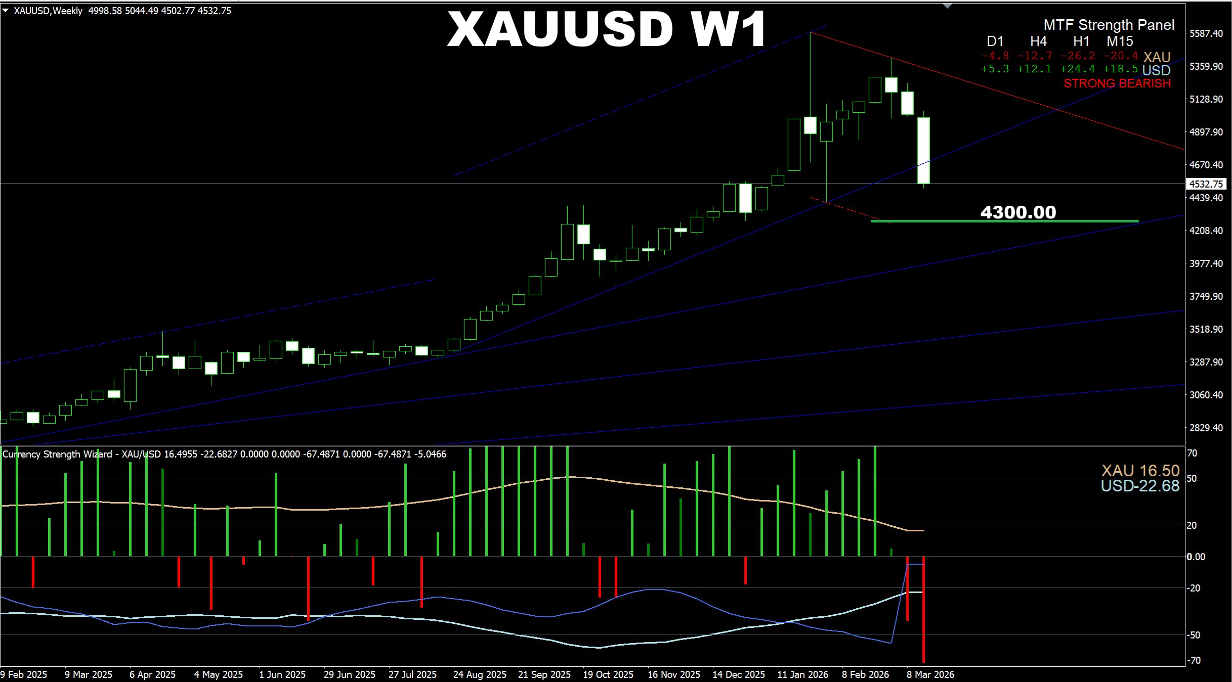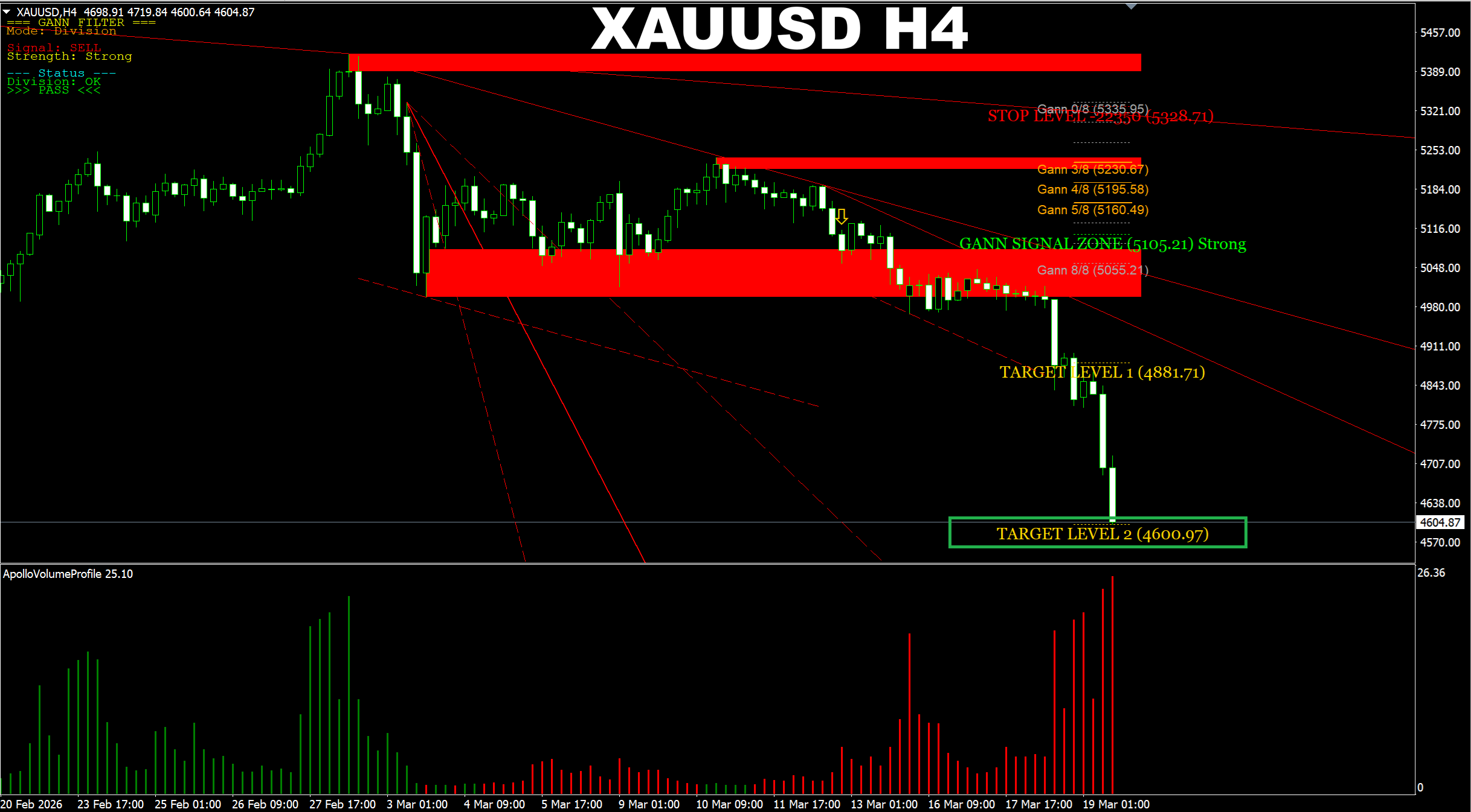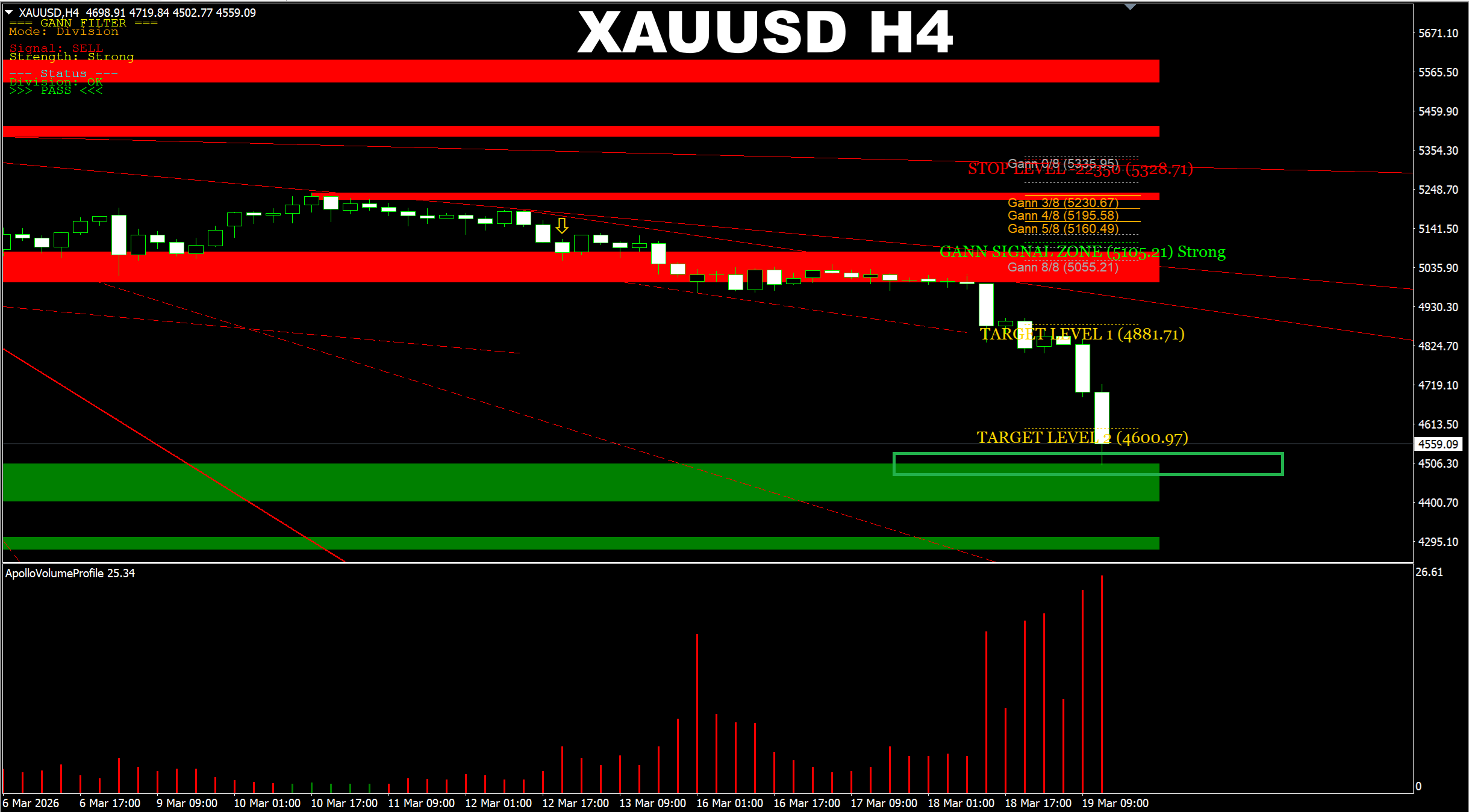 Gann Made Easy. XAUUSD H4. Another update on current market. Price has reached another Support and the 4500 area as it was predicted earlier.