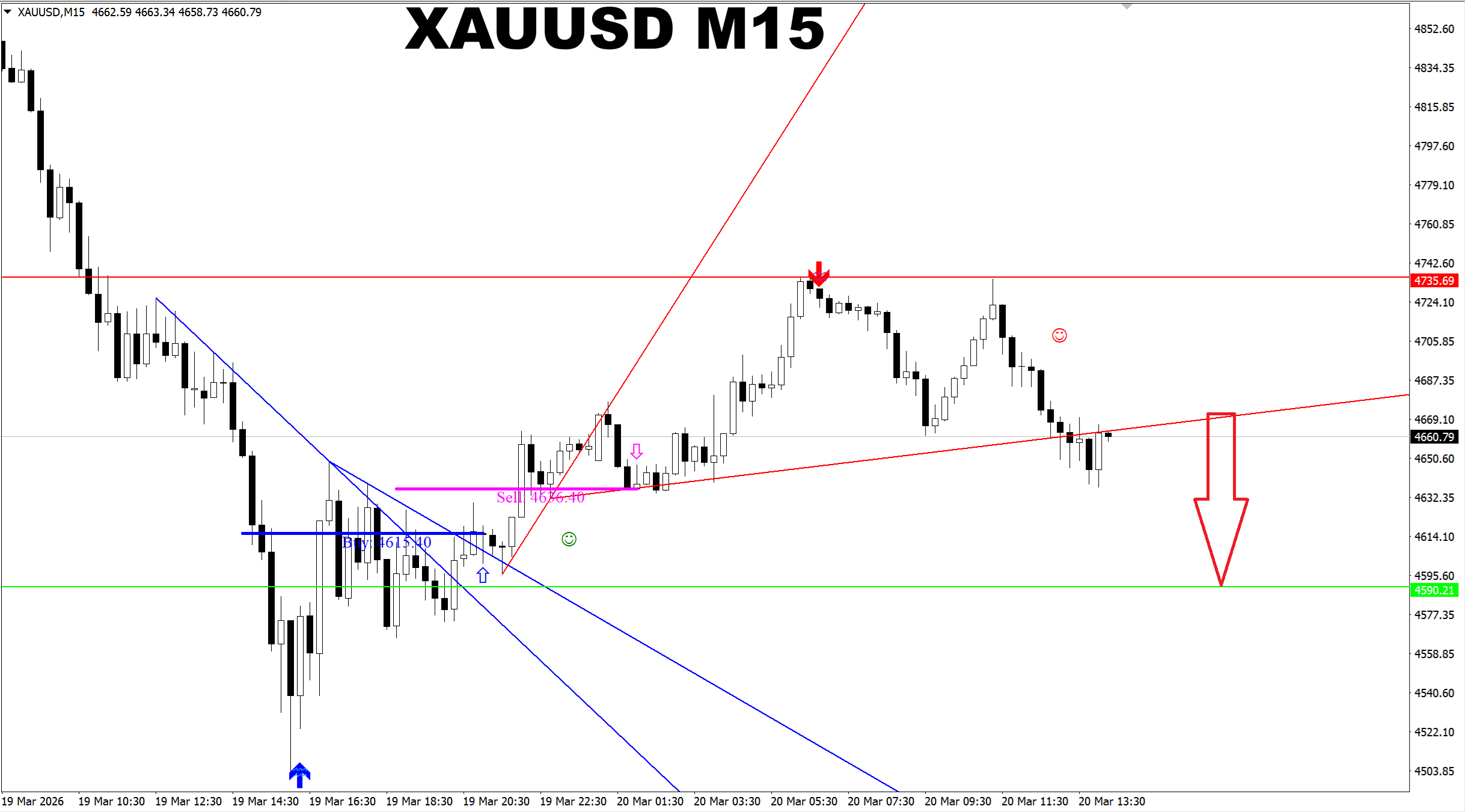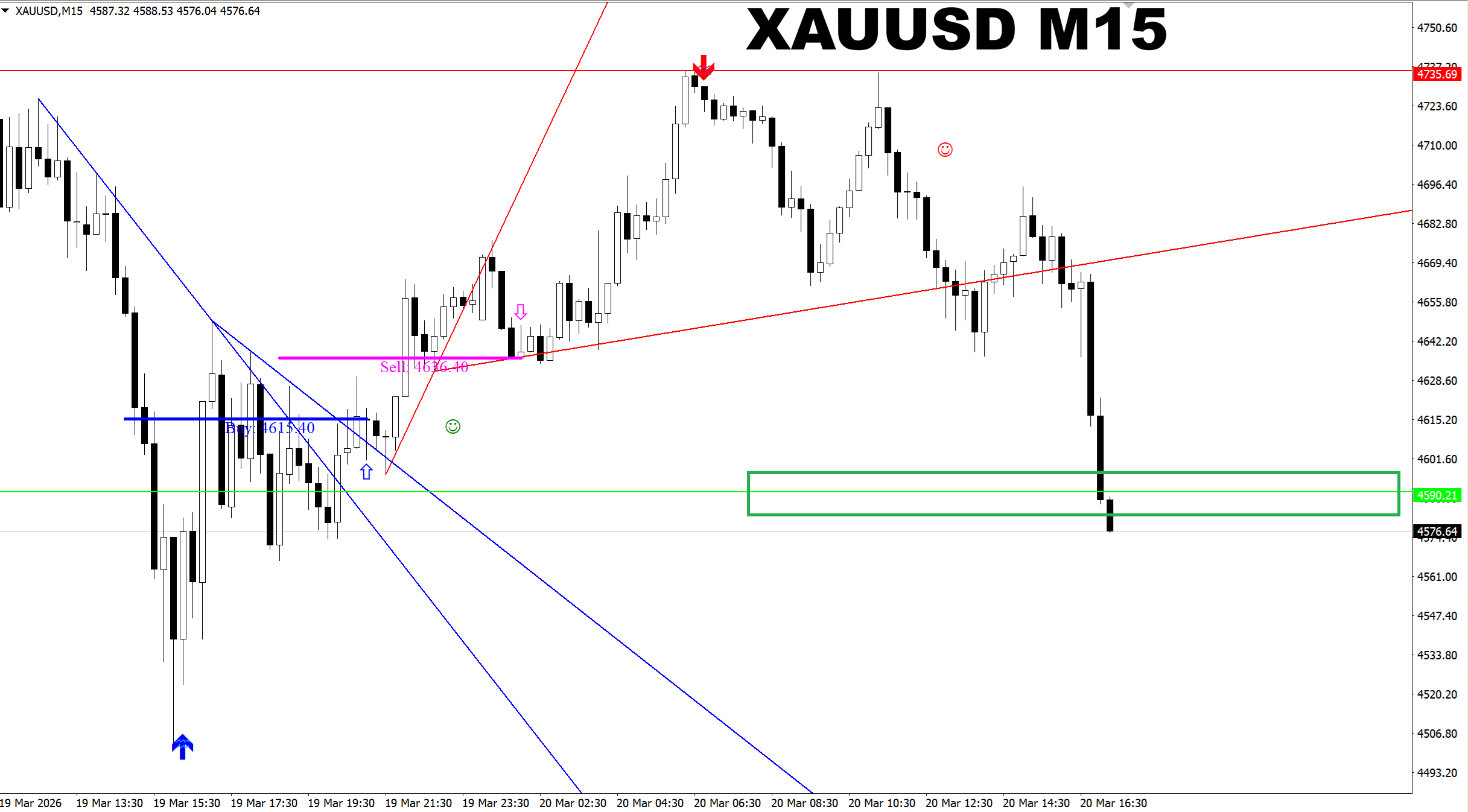 SR Master. XAUUSD M15. Update on recent SELL signal I provided earlier today. Price has reached the predicted target.