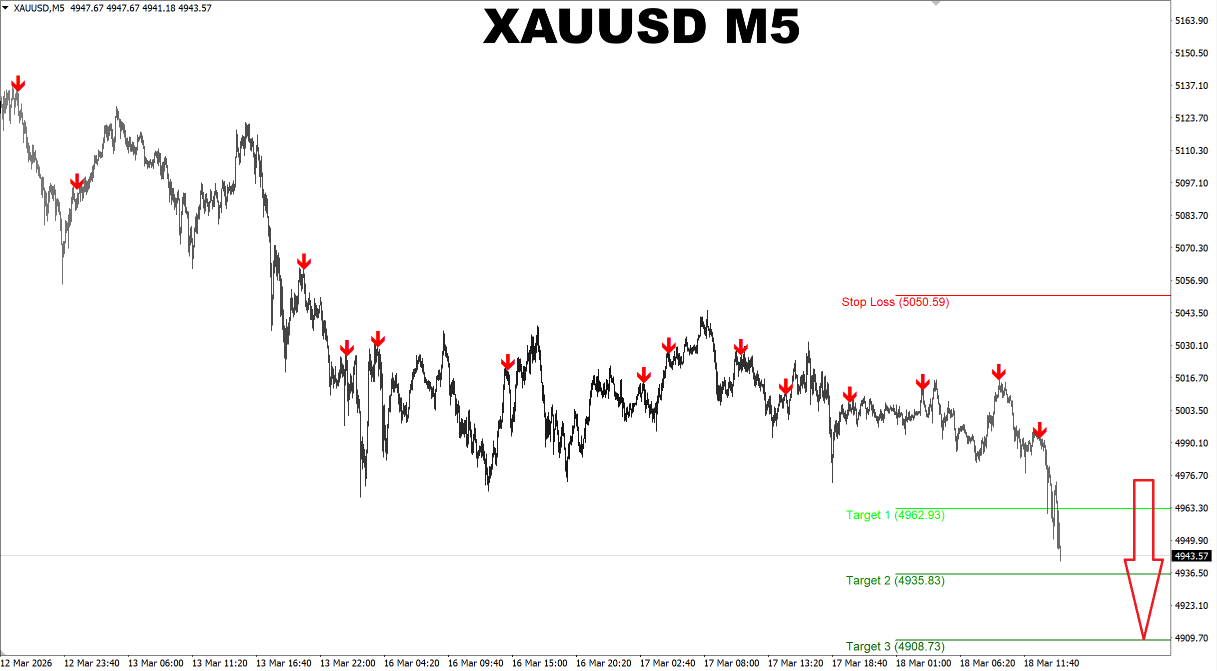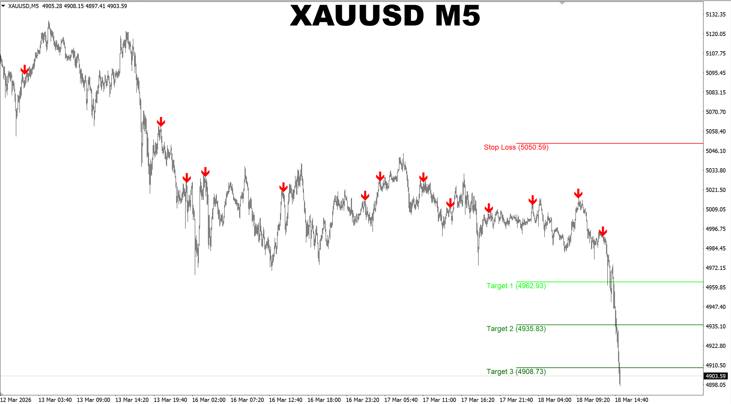 M1 Sniper. XAUUSD M5. Price has reached the earlier predicted target but the price will probably go lower.