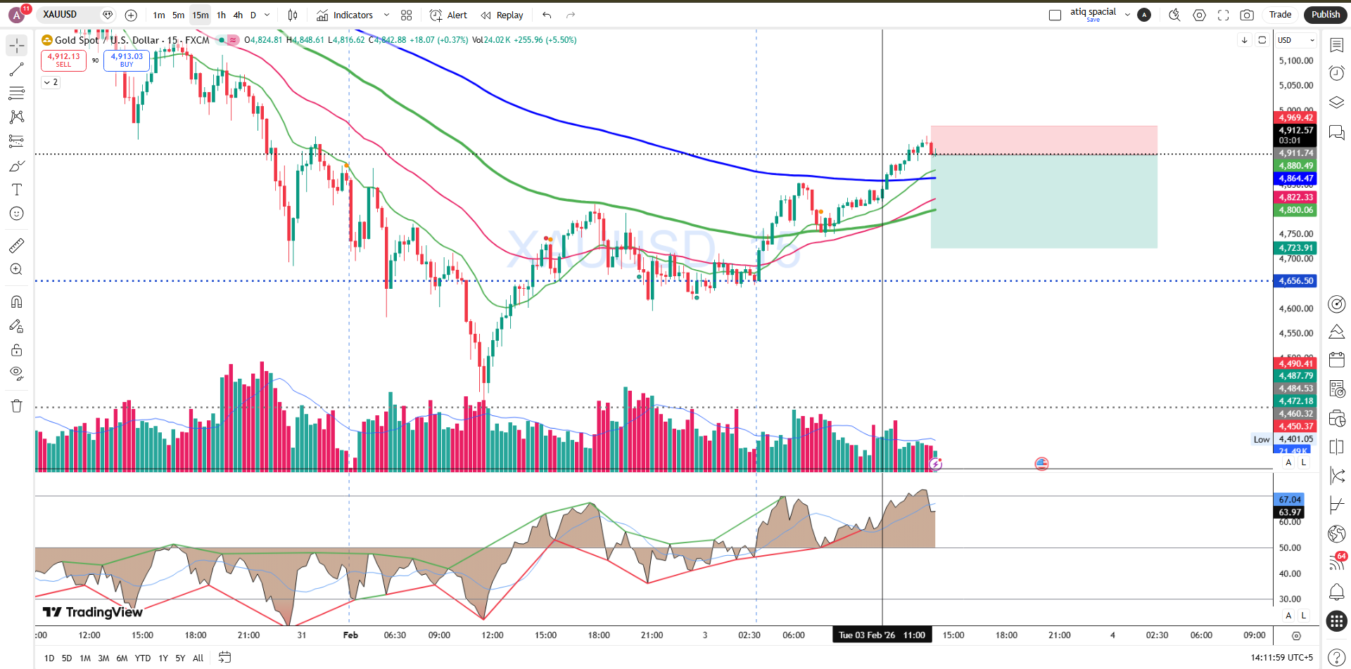 15-minute XAUUSD (Gold vs US Dollar) chart.