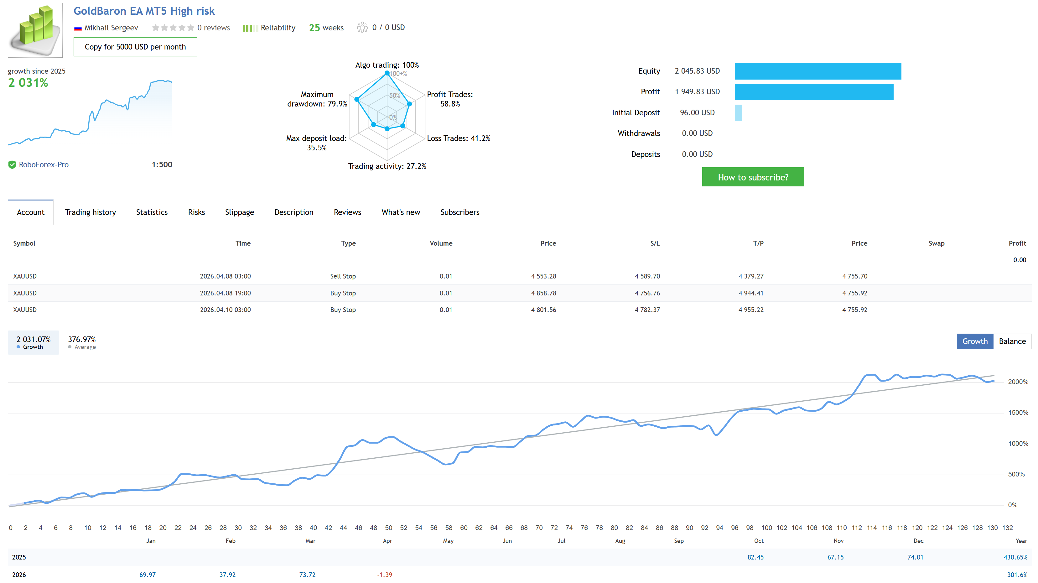The listing now features new, detailed parameters to provide a more comprehensive overview of the expert’s performance and strategy. Additionally, we have added a full description of the Pricing Policy, ensuring complete transparency regarding the cost structure and terms for this specific product.