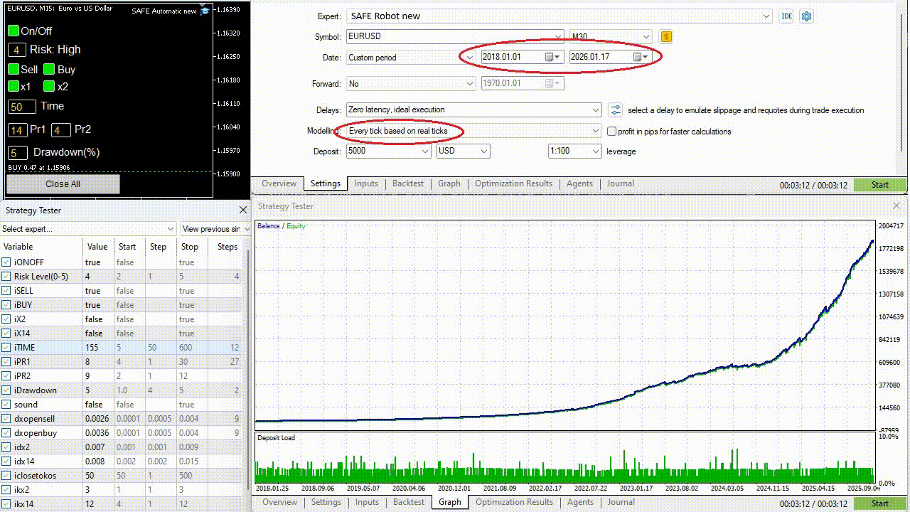 Testing the "SAFE robot new" from 2018 to 2025 on real ticks for EURUSD.
