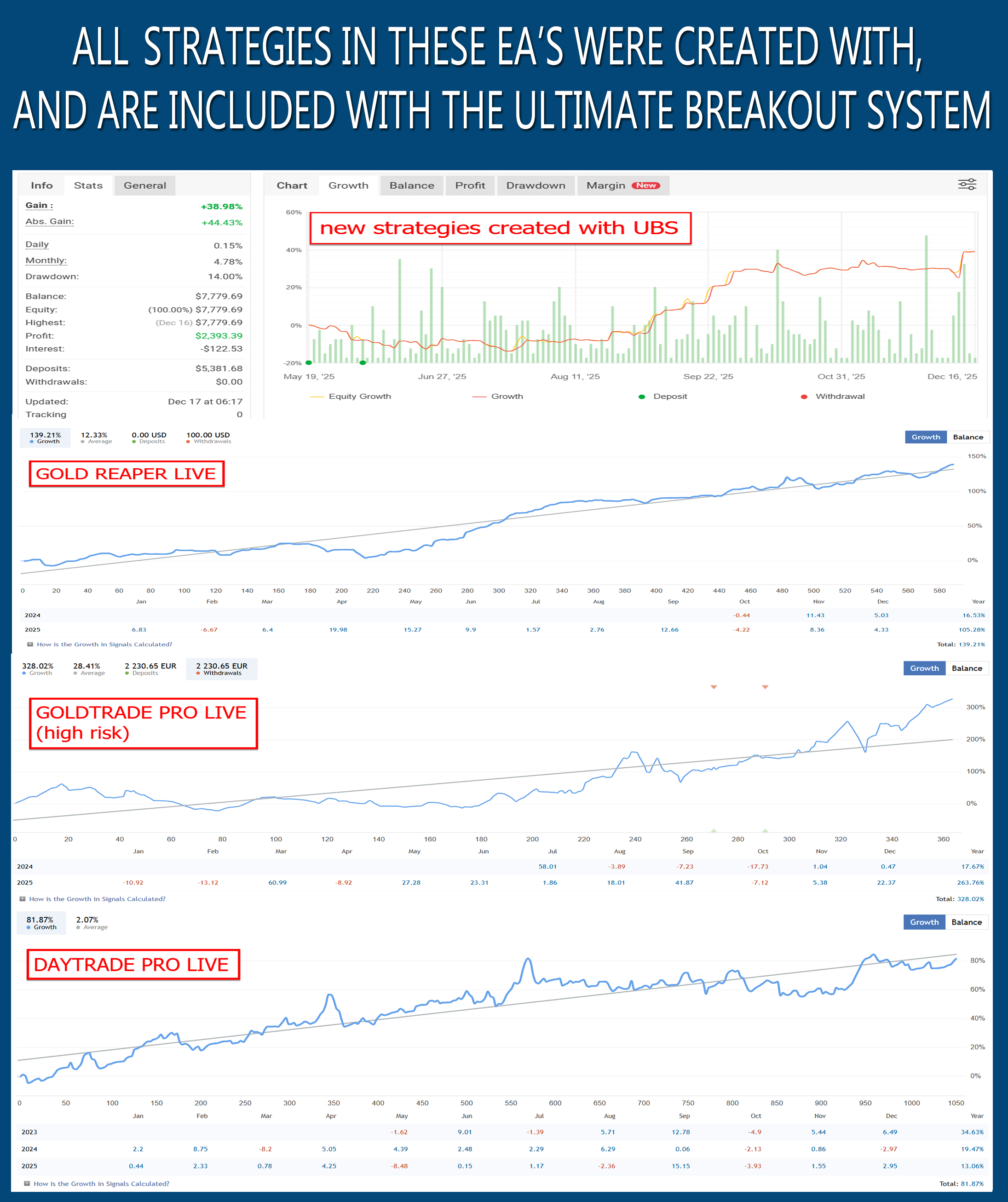 All 3 Gold EAs crushed it last year with ~100% growth and controlled drawdowns.