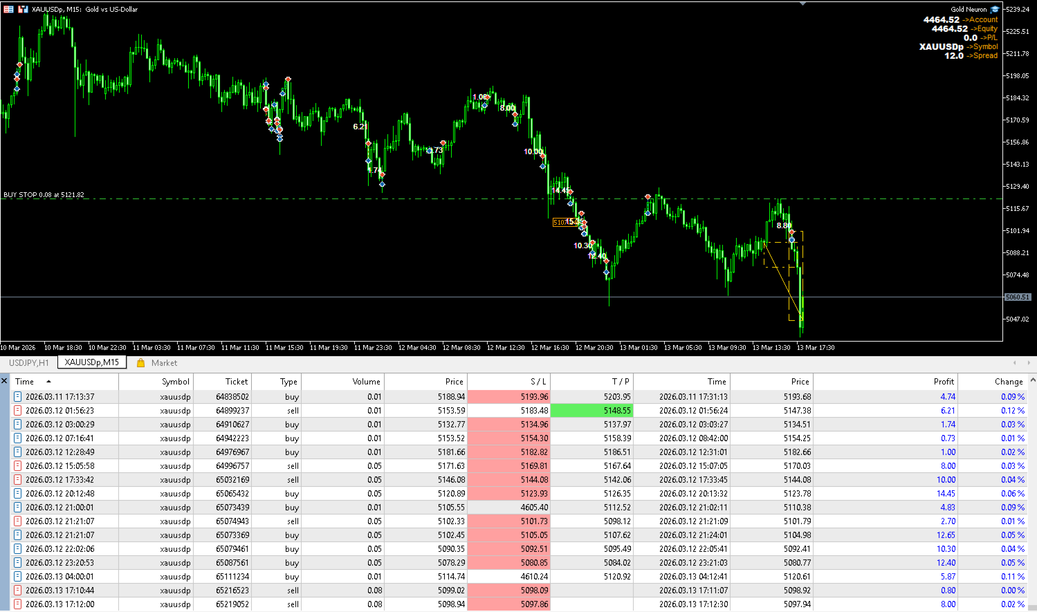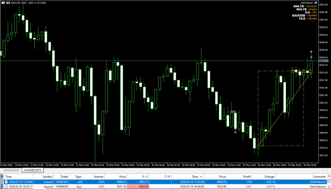 Gold Neuron XAUUSD向け高度マルチストラテジー取引システム ご注意ください:EAが現在の状況で最適な戦略を市場から自動的に抽出するため、設定で「すべての戦略」を有効にしてください。 推奨最低残高:0.01ロットにつき200ドル 例:0.02ロットにつき400ドルの残高など Gold Neuron EAは、M15時間足での金(XAUUSD)取引に特化して設計された、プロフェッショナルなマルチストラテジーEAです。 このシステムは、10種類の独立した取引戦略を統合し、様々な市場環境下で高確率の取引機会を検出します。 単一戦略のロボットとは異なり、Gold Neuron EAは複数の取引手法を組み合わせることで、市場に動的に適応します。 • トレンド取引 • ブレイクアウト検出 • 反転機会 これにより、EAは様々な市場局面において常にアクティブかつ効率的に機能します。 このシステムは、広範なバックテストとフォワードテストを含む、3ヶ月以上にわたる開発、最適化、テストを経て完成しました。 コア戦略エンジン Gold Neuron