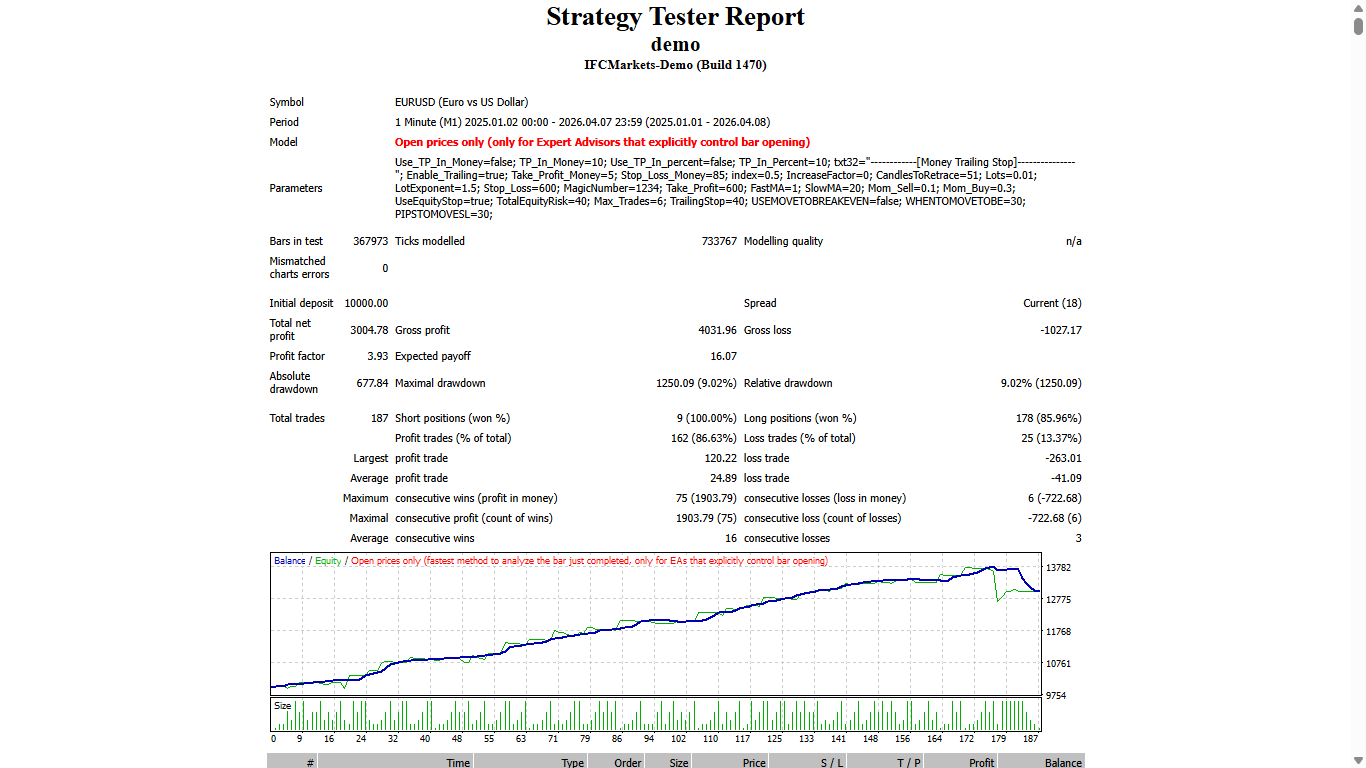 1 Minute Scalper EA with 13 moving Averages has Trailing Stop Loss &Take Profit works best on 1 minute time frame major forex pairs