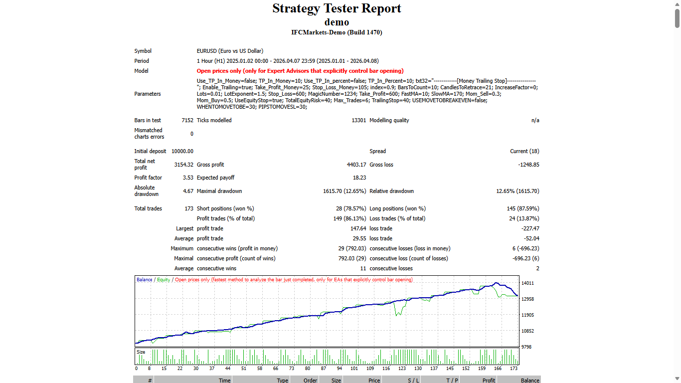 - Take Profit In Money (in current currency) (values: 25-200).