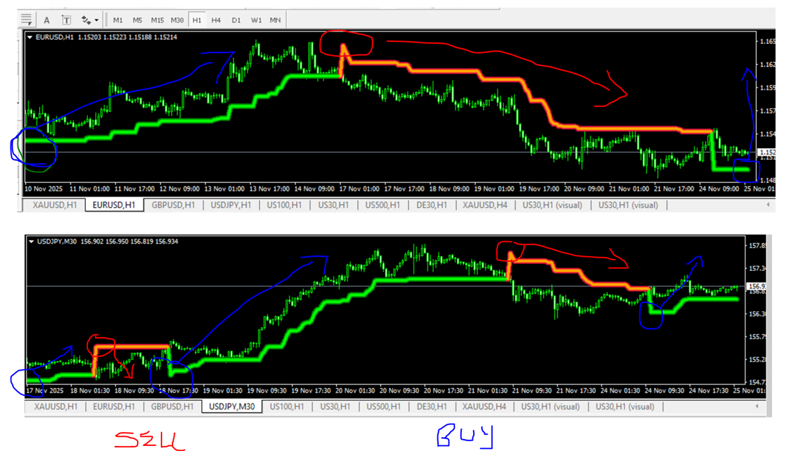 1. IF price forms: - Higher highs + higher lows → TREND = BUY - Lower highs + lower lows → TREND = SELL ELSE → NO TRADE 2. IF: - Trend = BUY - Price retraces to support zone - Bullish engulfing candle forms - TDI green crosses above red (optional) THEN: - Execute BUY 3. IF: - Trend = SELL - Price retraces to resistance - Bearish engulfing forms - TDI confirms THEN: - Execute SELL 4. Risk per trade = 1% of account Lot