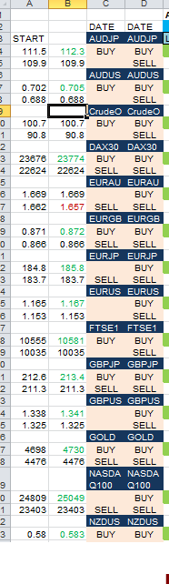 AUDJPY. 3 prices can be selected from column A and B. So say 111.5,109.9, and 112.3. If TF High is above 112.3 and Lowest TF price is above 109.9, then TAKE a Double trading BUY opportunity between 109.9 to 112.3. and simple trades of BUY above 112.3 to a risk level of previous highest TF. The same concept will apply to a SELL option. If Low of last TF is below the lowest of the 3 prices and highest of the TF is below the Highest of the 3 prices, then it will be a SELL option. Accordingly, For EURAUD, Double trading SELL opportunity between 1.669 to 1.657 and simple trades of SELL below 1.657 to a risk level of previous lowest TF.