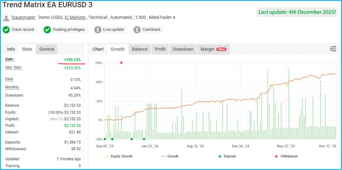 Trend Matrix EA equips you with the knowledge and tools to navigate the dynamic forex market with confidence. Transform your trading experience today and realize your true profit potential with Trend Matrix EA.