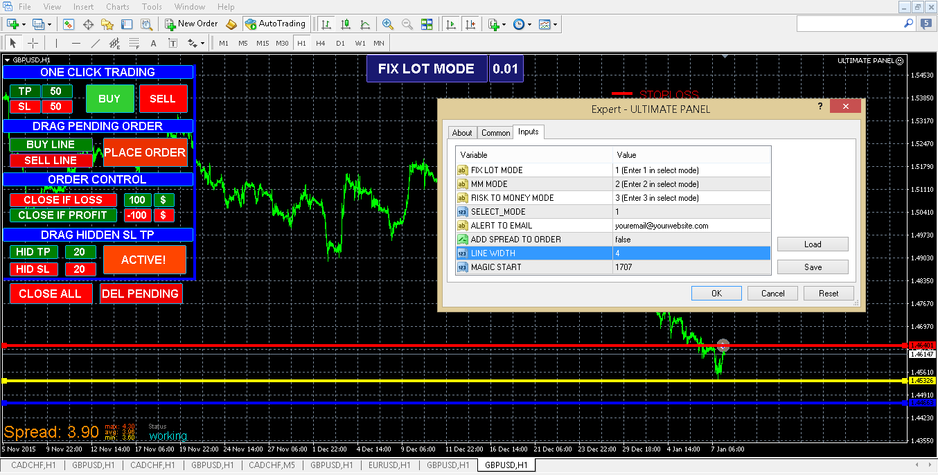 The One click trading section works perfectly but