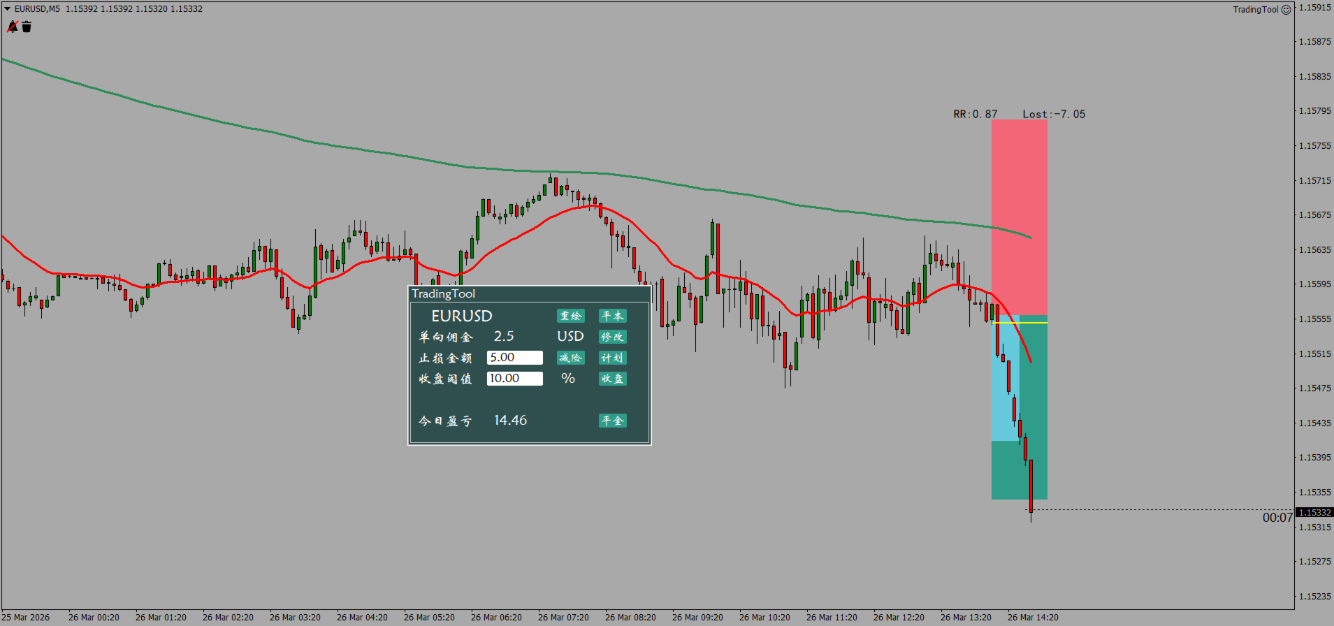 Profit-loss ratio calculation and position control features: Based on real-time spreads and user-inputted fees, the actual profit-loss ratio of the plan can be calculated. After the user inputs the risk amount or risk ratio, the position can be established immediately according to the plan. After the position is successfully established, you can narrow the stop loss and expand the take profit. Both take profit and stop loss automatically calculate the spread, so there is no need to worry about accidentally touching the stop loss. If you are a price action trader, or any trader focused on the profit-loss ratio, this feature will greatly improve your efficiency and help you establish healthy trading habits.