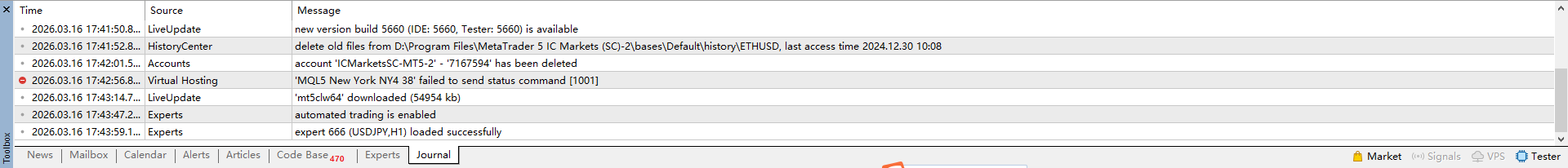 Or you can see the log/journal/experts of MT5 . See what's wrong.