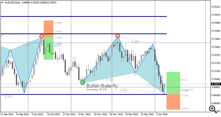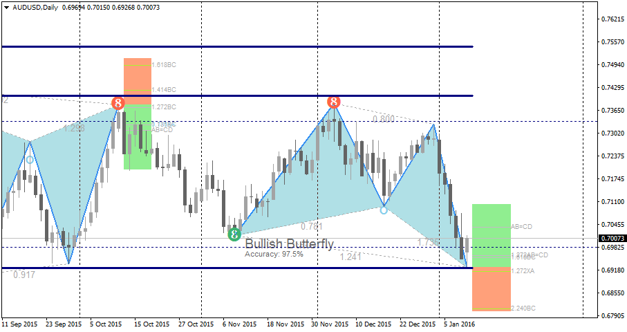 A Bullish Butterfly detected by Monster Harmonic Indicator, right into a Support Zone.
