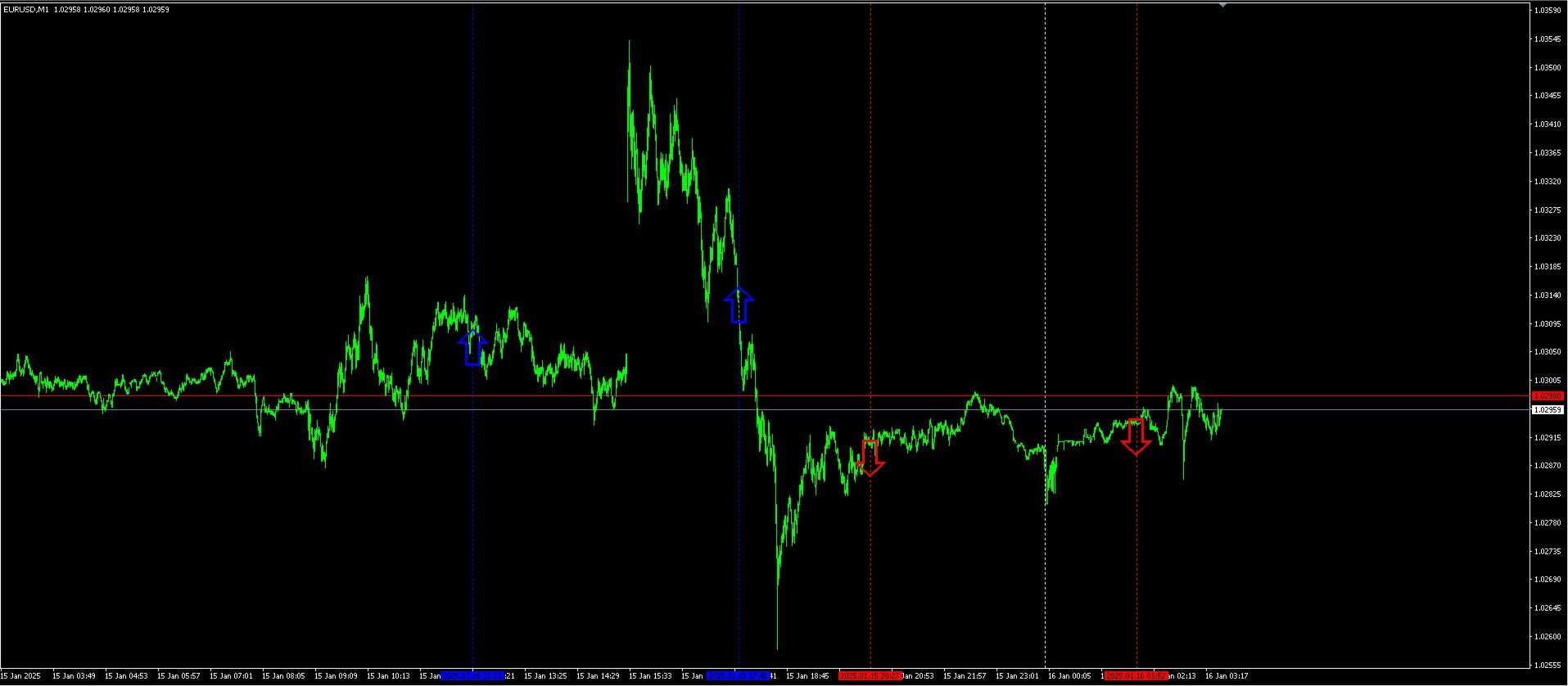 - Алгоритм выставления стрелки: Если глобальное разрешение на день получено (например, "ищем только покупки"), индикатор начинает отслеживать более быструю, внутридневную ситуацию.
