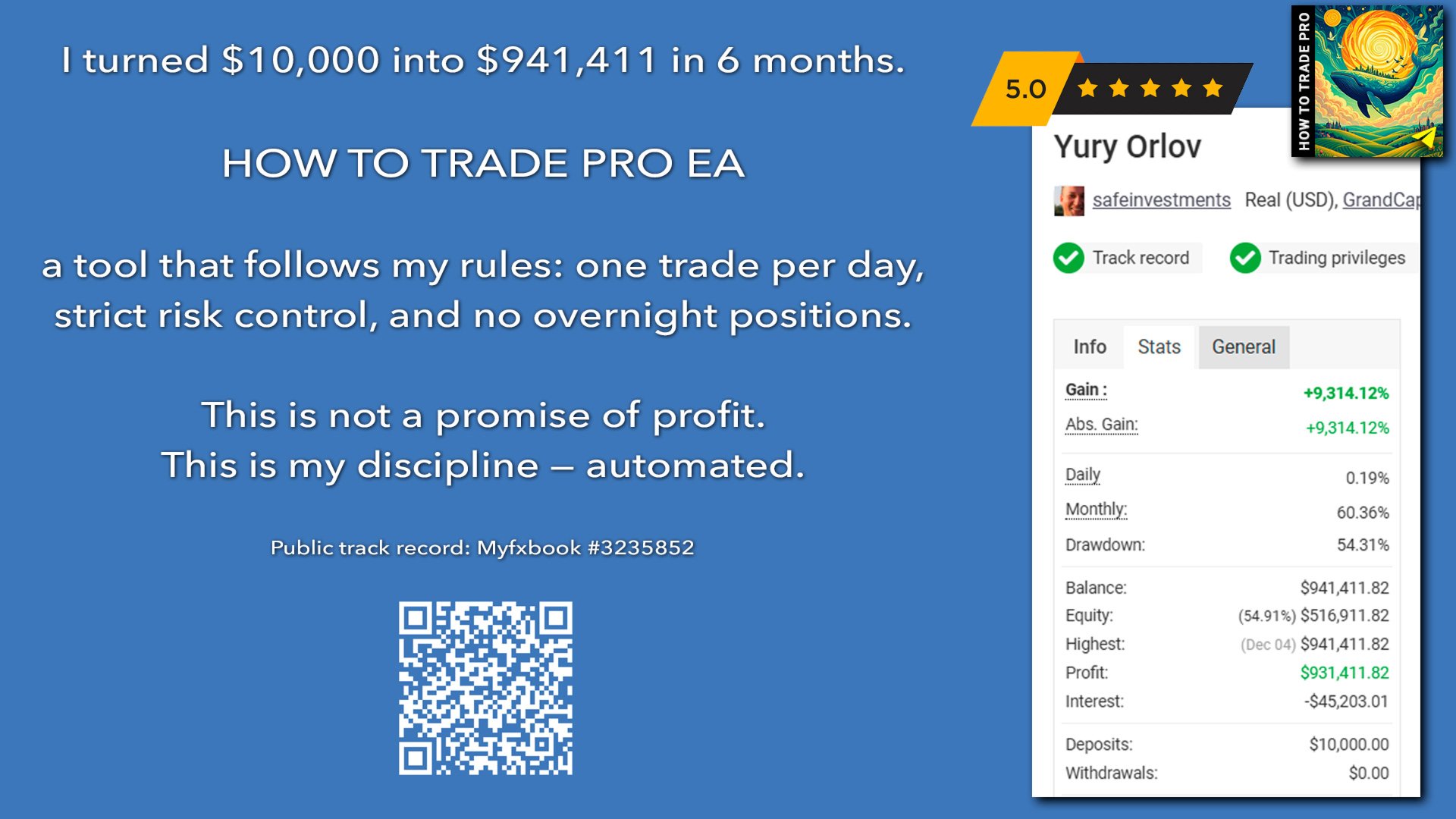 How To Trade Pro EA — 안정성, 제어, 명확한 작동 논리를 중시하는 트레이더를 위해 생성된 신세대 완전 자동 거래 알고리즘입니다. "마법 인디케이터", 마틴게일, 그리드를 사용하지 않습니다. 그 핵심은 시장 임펄스의 적응 처리와 엄격한 알고리즘 제어입니다. 최대 안전이 우선 — 스탑로스와 테이크프로핏은 즉시 설정되어 거래 개시부터 위험의 완전 투명성을 보장합니다.