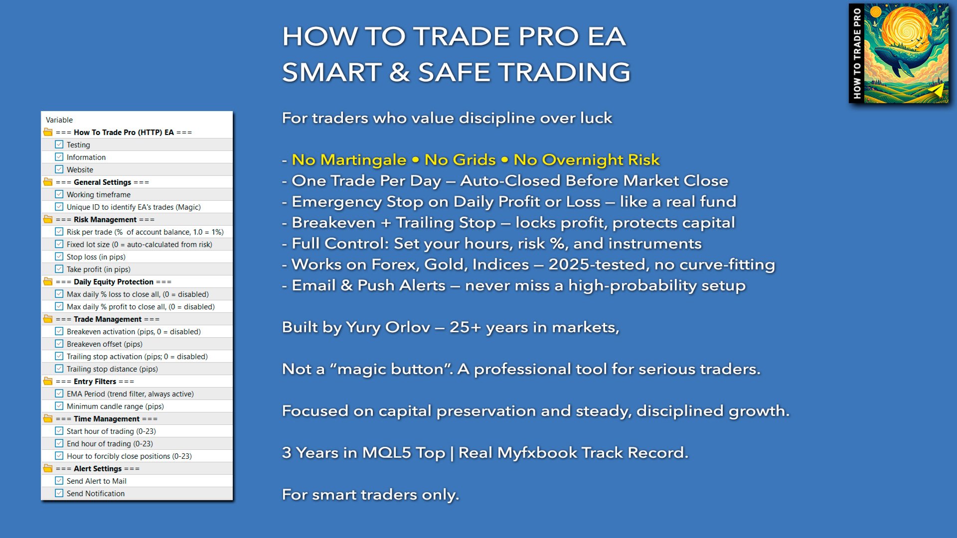 How To Trade Pro (HTTP) EA — 25년 이상의 경험을 가진 저자로부터, 마틴게일이나 그리드 없이 모든 자산을 거래하는 전문 거래 어드바이저.