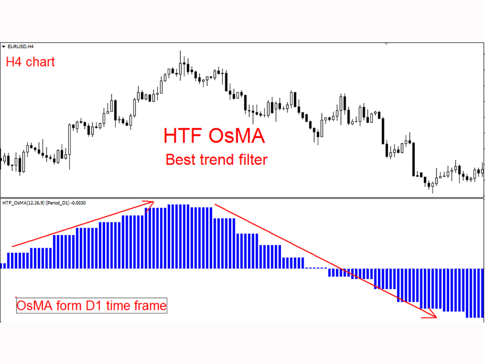 - HTF OsMA는 시장에서 가장 뛰어난 추세 지표 중 하나입니다. HTF는 Higher Time Frame(상위 시간대)을 의미합니다.