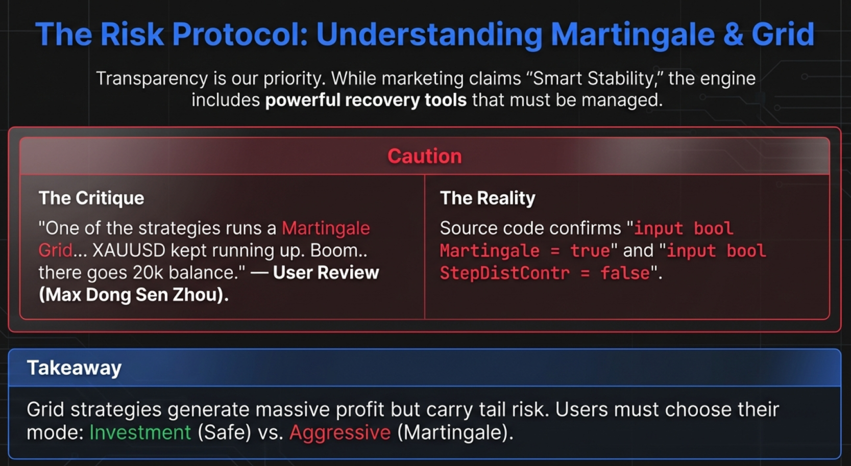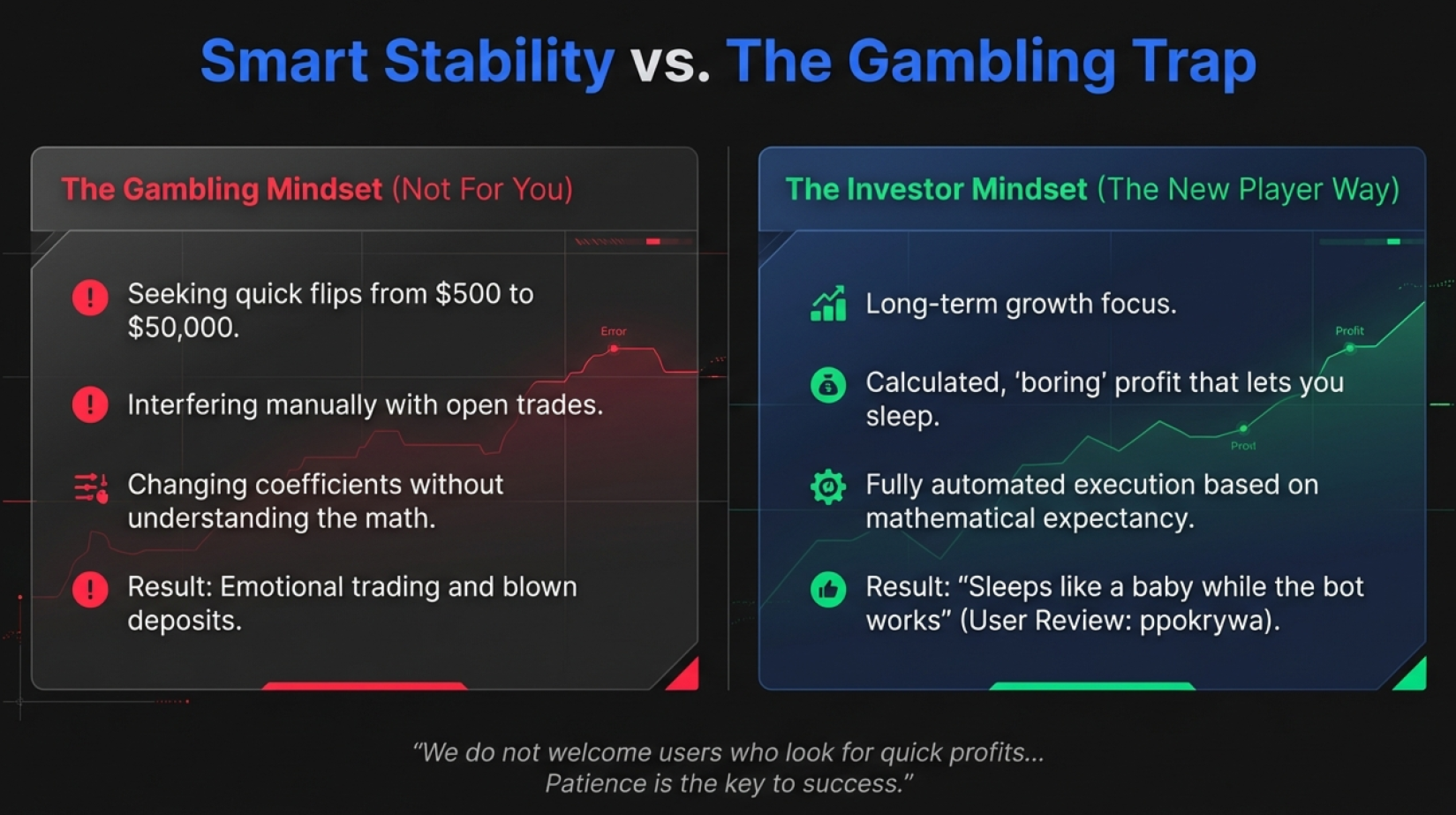 So, let me first of clear my name. I am not bought by anyone or anything, this is my honest opinion and the final verdict I will leave with this EA. The trades look fine and all, but once you start to run it on a longer basis, you will notice that one of the strategies runs a Martingale Grid. Im sure that in itself should tell you quite a bit about this EA. Yes there are strategies without Grid or Martingale, but they just are not profitable. The essence of this EA is to take advantage of Grids, so realistically your account will be blown at some point. on the 10/11/25 I woke up to a bunch of sell positions on XAUUSD. 0.17, 0.24, 0.36... it just kept opening positions against the trend. At some point I had a 3.48 lots position open and 8.5 lots total. Guess what, XAUUSD kept running up. Boom.. there goes 20k balance. Im not the only one who experience this issue. And when confronted in the Telegram chat, all I received was a rude answer from the support. The Author himself does not seem to speak English, as his messages always sound translated or straight up wrong. The EA does work on other FOREX pairs, but for trending commodities and Bitcoin I would never ever use EA New Player, as the grids will eventually eat your money. Please be careful who you trust out there. PS: Regarding the MQL5 Signals, you might see a 20k deposit, but don't be fooled, those are instaforex cent accounts, meaning 20k balance are only 200 in reality. I hope that tells you enough about this developer and his intentions.