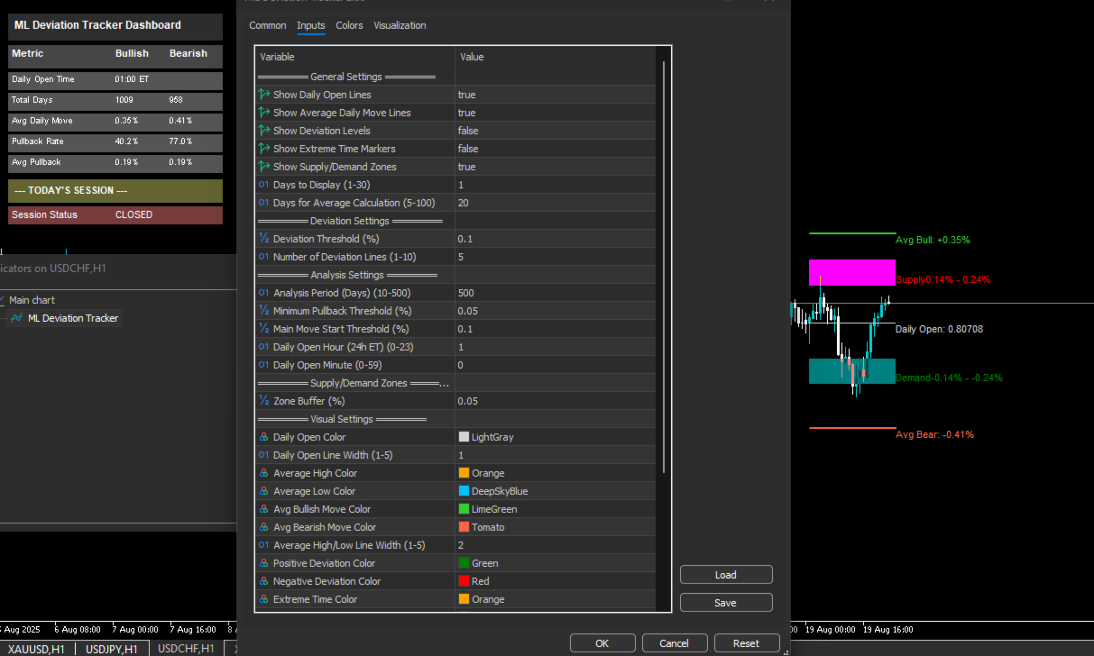 Deviation Tracker Advanced is a professional-grade, all-in-one toolkit for MetaTrader 5 designed to decode the daily price cycle. By analyzing price behavior relative to the daily open, this indicator provides a powerful statistical and visual framework for intraday traders.