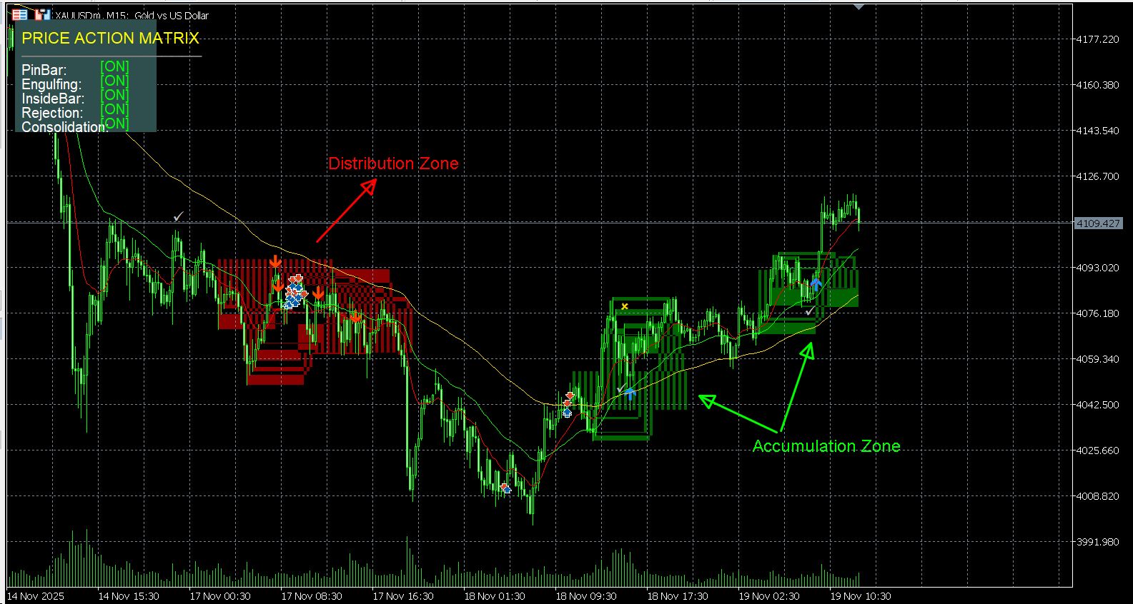 Van Minh Nguyen 2025.11.19 15:01 #2 Price Action Matrix – Version 5.0 Update: - Added a Dashboard that allows enabling/disabling candlestick patterns directly on the chart.- Added Accumulation/Distribution zone display