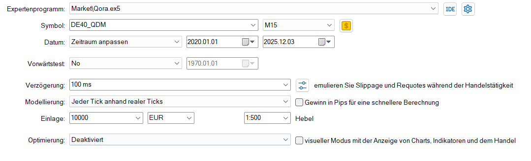 The 12-18 month window should cover different market regimes: trending, ranging, high volatility, low volatility. For indices like US500/GER40, include at least one significant correction phase. For XAUUSD, ensure you capture both risk-on and risk-off periods.