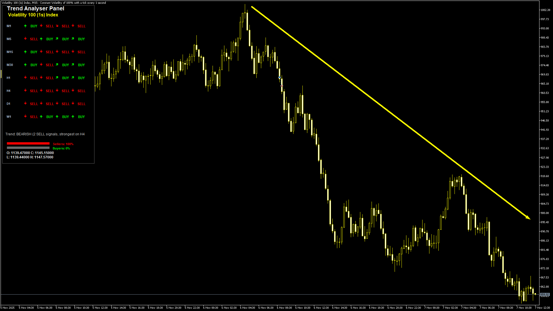Intuitive Visual Interface: A compact, non-intrusive dashboard rendered directly on the chart window. Features a color-coded system (Green for Buy, Red for Sell, Yellow for Neutral) for instant comprehension.