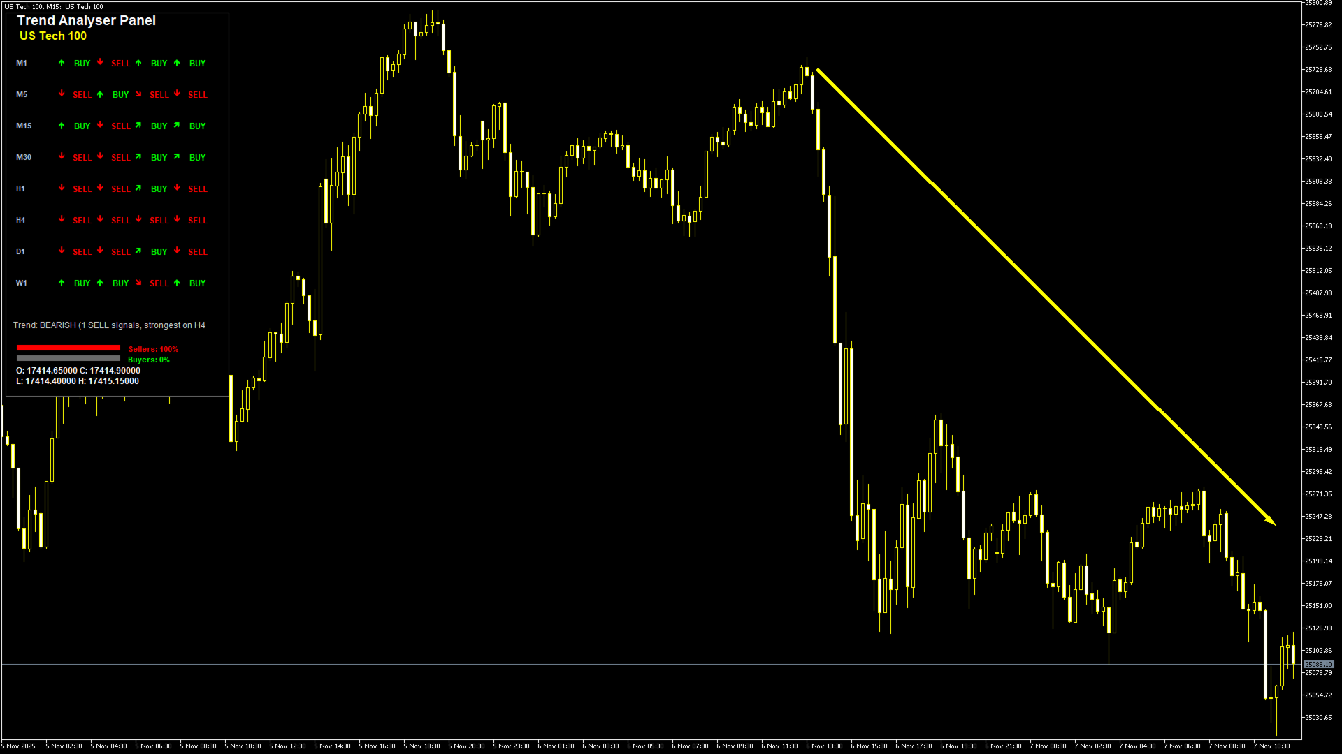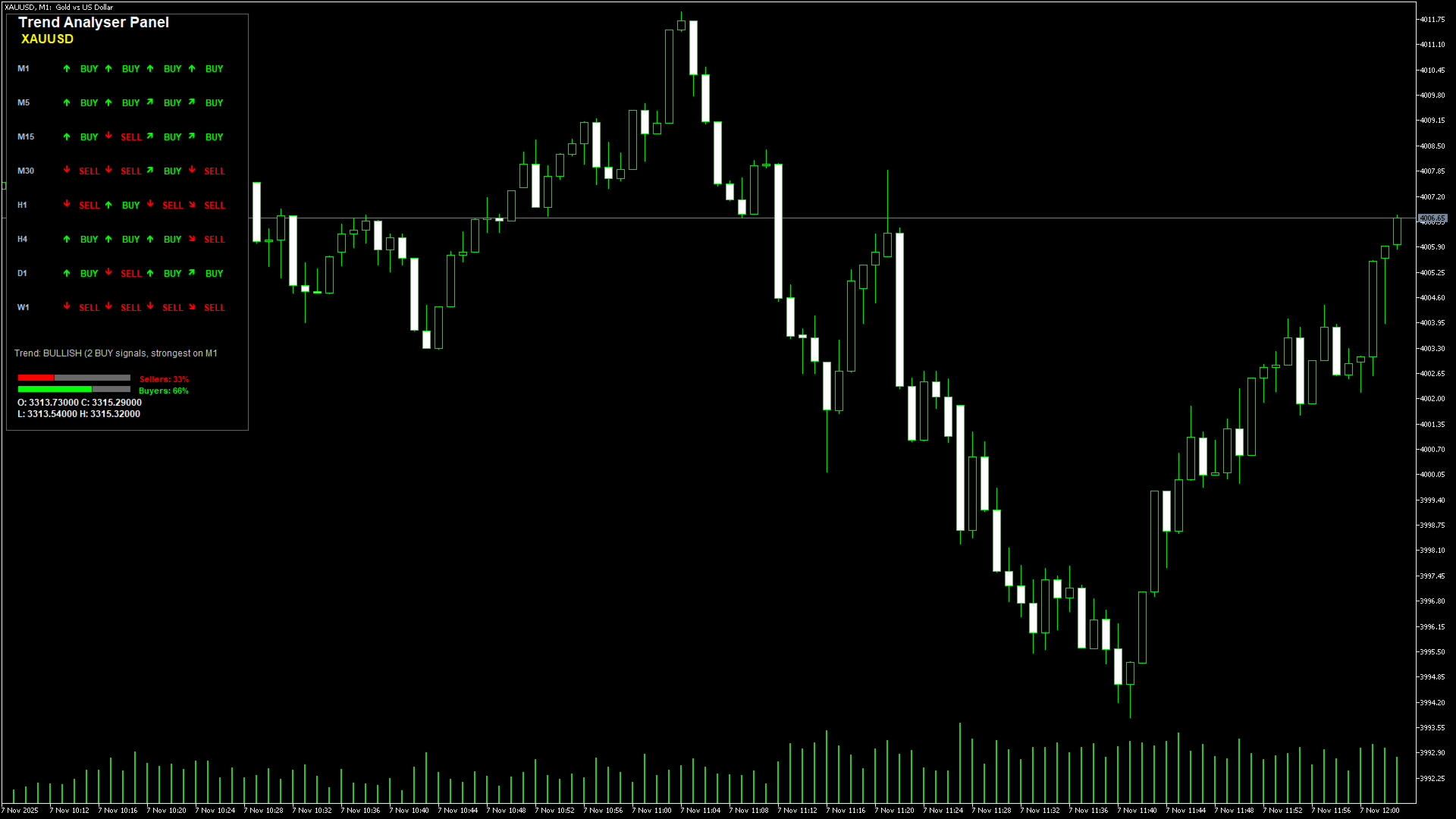 Data Collection: For each enabled timeframe (e.g., M5, H1, D1), the indicator gathers real-time data from: