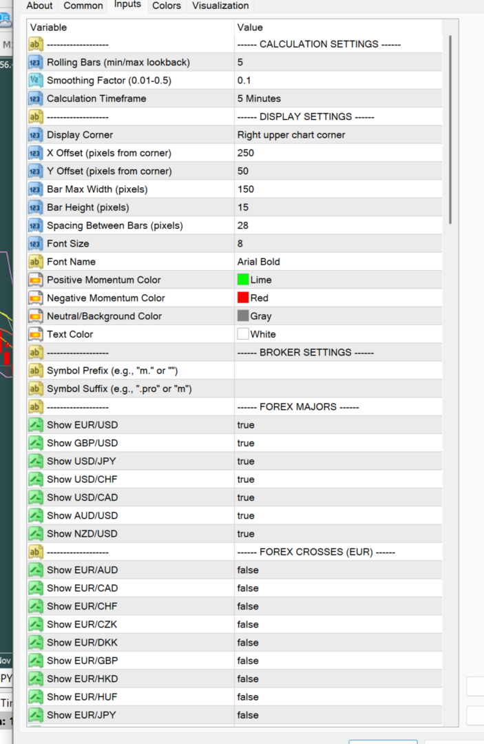 - Variable format: Momentum_EURUSD, Momentum_DXY, etc.