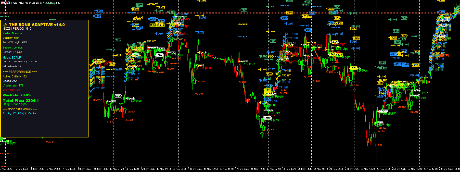 тестировал индикатор на нескольких фьючерсах. хорошие результаты но он показывает сигналы только на покупку и ни одного сигнала на продажу. на скрине пример фьючерса на газ