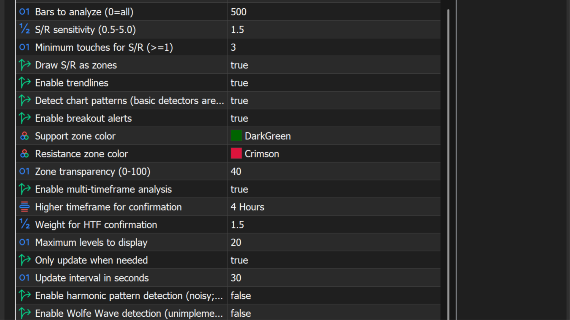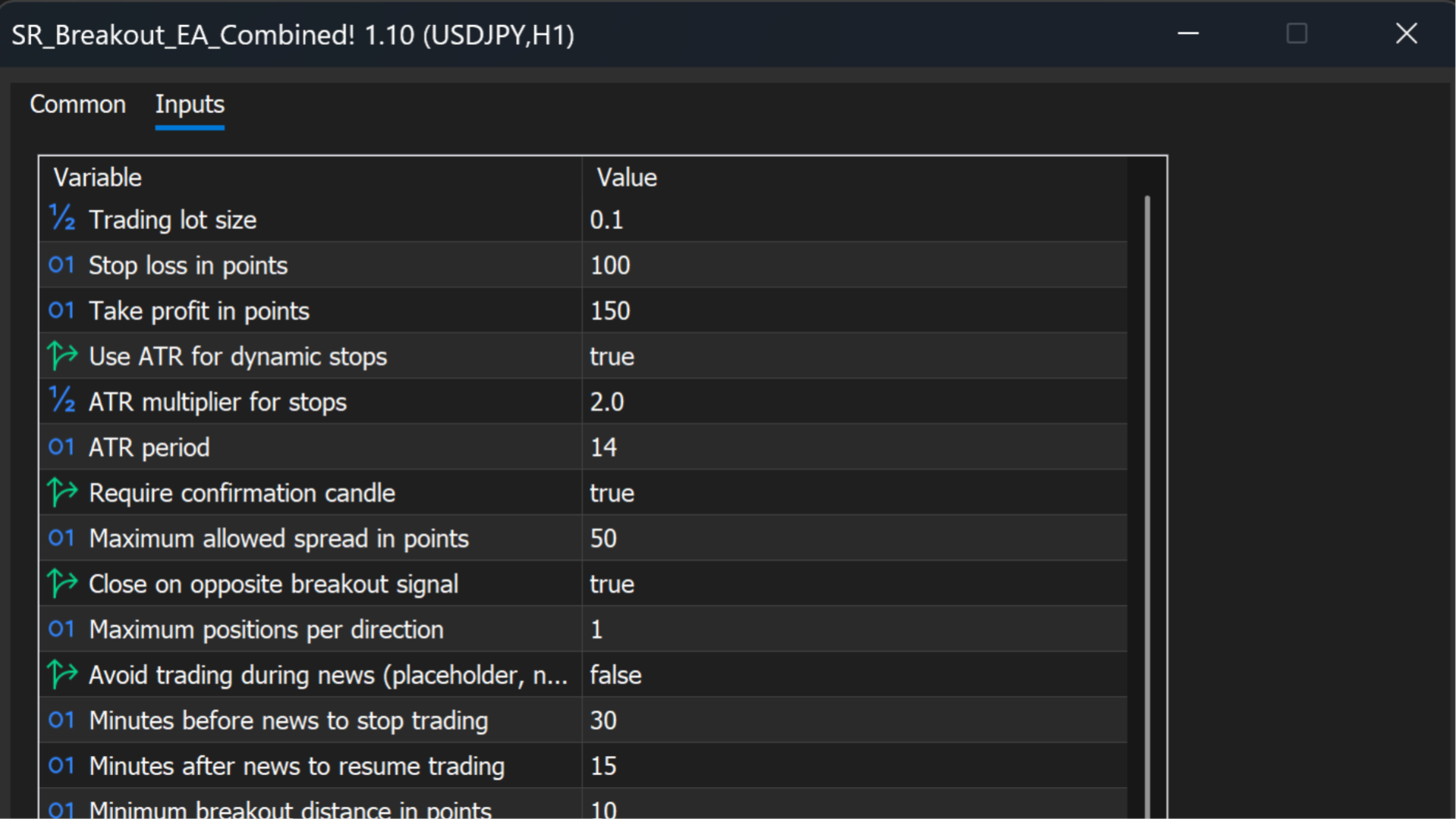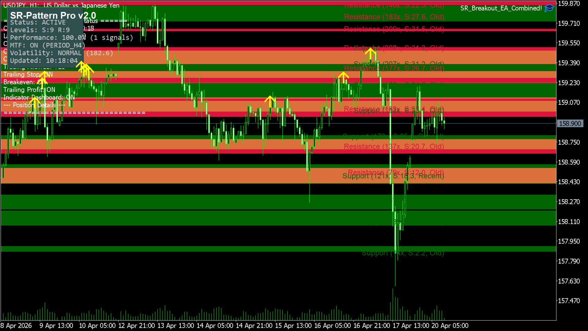 SR Breakout EA는 MetaTrader 5용 완전 자동 매매 전문가 시스템으로, 모든 종목과 시간프레임에서 실질적인 지지선과 저항선 돌파를 거래합니다. 설정 가능한 조회 구간 내에서 가장 최근의 스윙 고점과 저점을 식별하고, 모멘텀 및 임펄스 필터로 돌파를 확인한 뒤, 가격이 측정 가능한 거리만큼 레벨을 돌파한 후 돌파 방향으로 진입합니다.