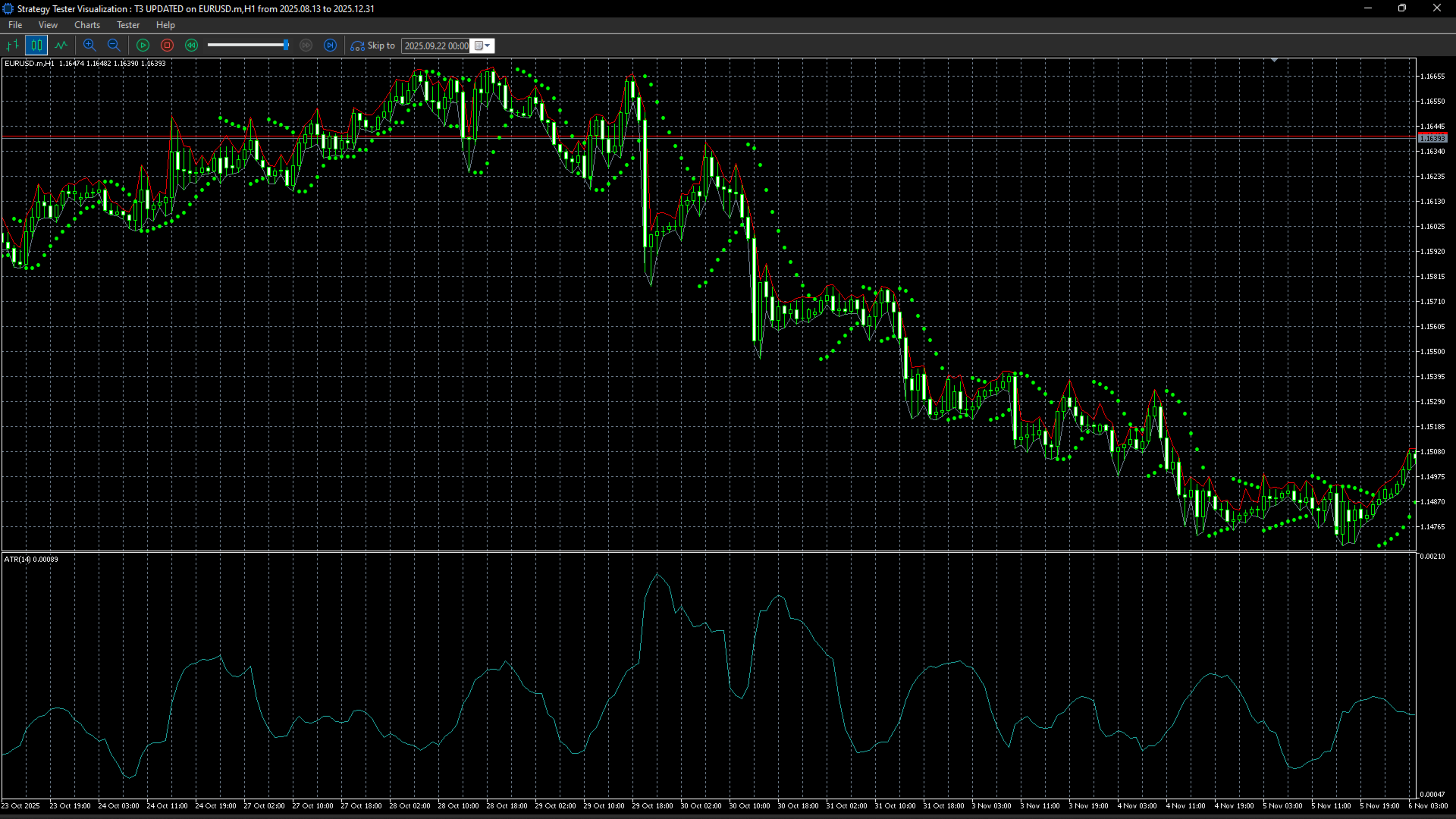The system utilizes two T3 Moving Averages, a sophisticated smoothing technique that reduces lag while maintaining sensitivity to price movements: