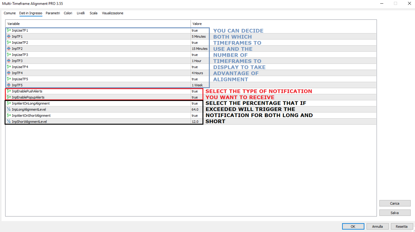 기본 버전과 비교하여 PRO 버전은 최대 5개의 시간 프레임 설정, 캔들 간 퍼센트 변화, 고급 그래픽 막대, NO → YES 방식의 지능형 알림 시스템, 스마트폰 푸시 알림, 뛰어난 시각적 가독성과 안정적인 전문가급 동작을 제공합니다.