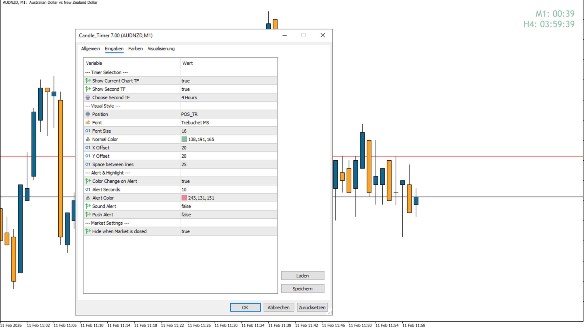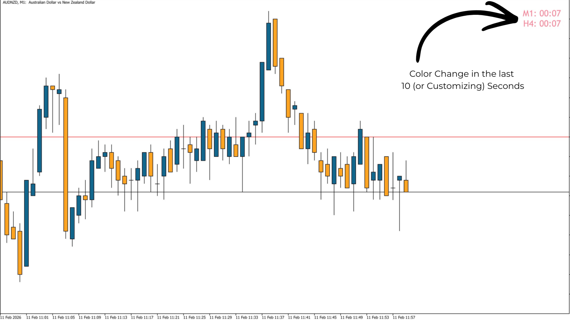 시각적 경고 신호: 지표는 캔들 마감 직전 마지막 몇 초 동안 카운트다운 색상을 변경하여 사용자의 주의를 제때 끌 수 있습니다.