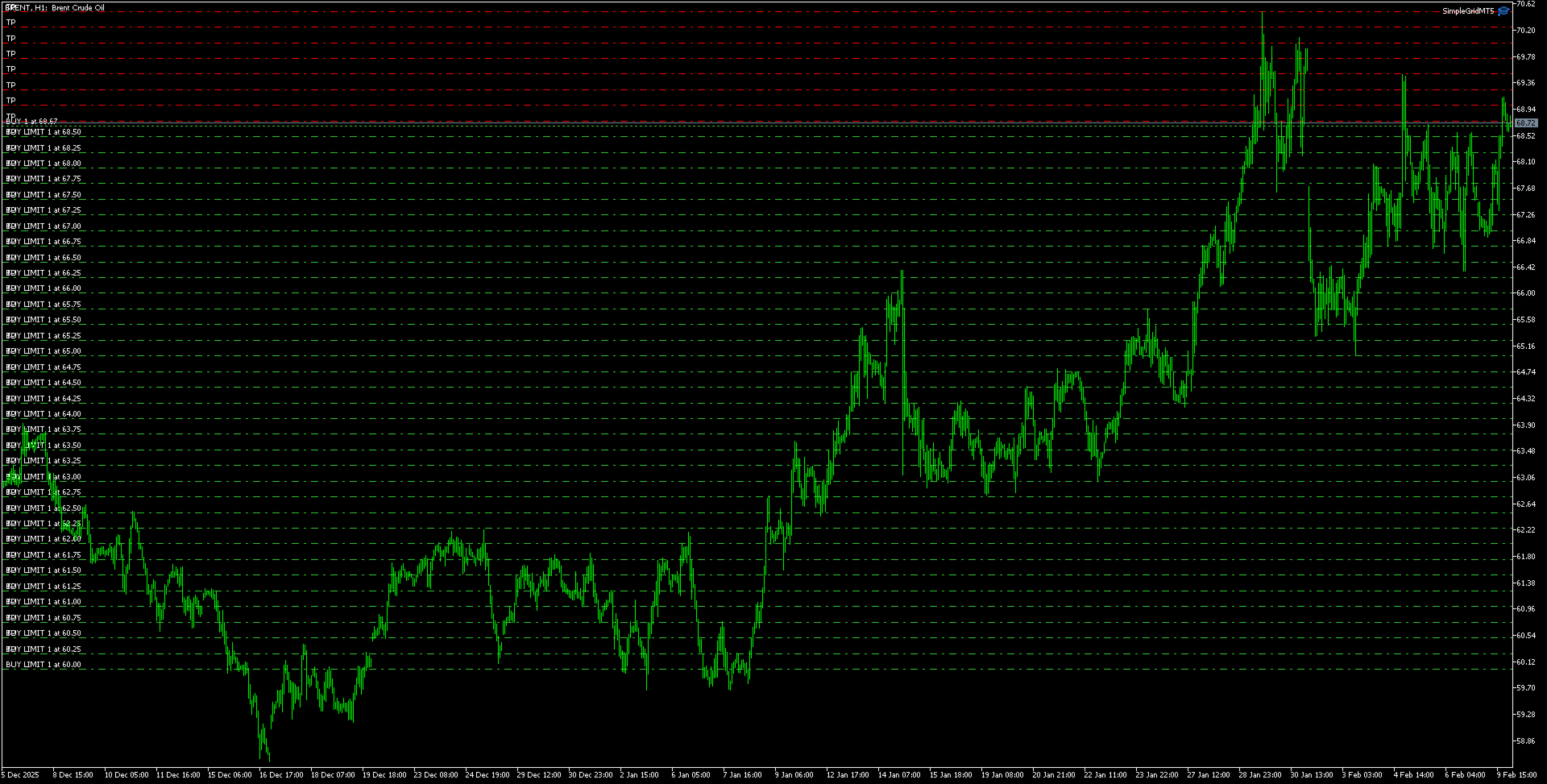 This Expert Advisor (EA) implements a simple grid strategy by placing limit orders and opening positions within a specified price range and step. If the current market price is within the range, the EA not only places limit orders but also executes market orders to ensure precise alignment with the grid levels.