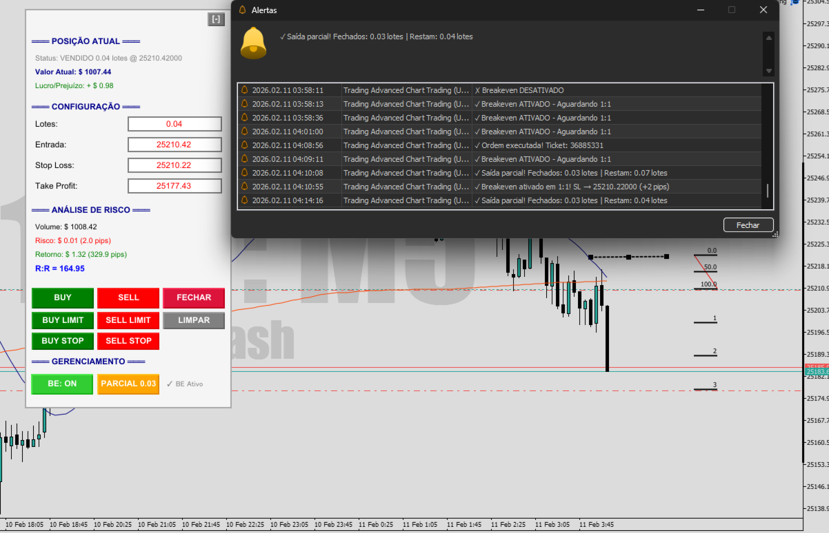 Trading Advanced Panel is the ultimate control panel for traders seeking precision, agility, simplicity, and professional risk management. Developed with the best management experiences from top-tier platforms, this EA revolutionizes how you trade on MetaTrader 5.